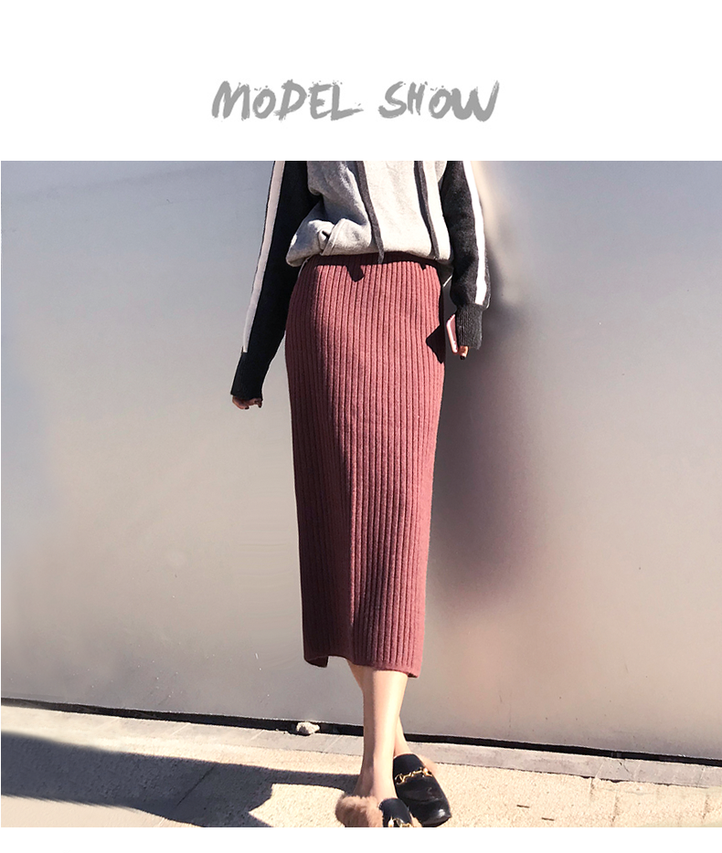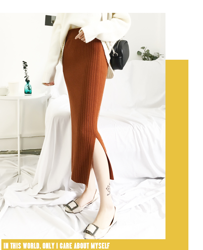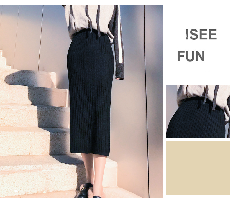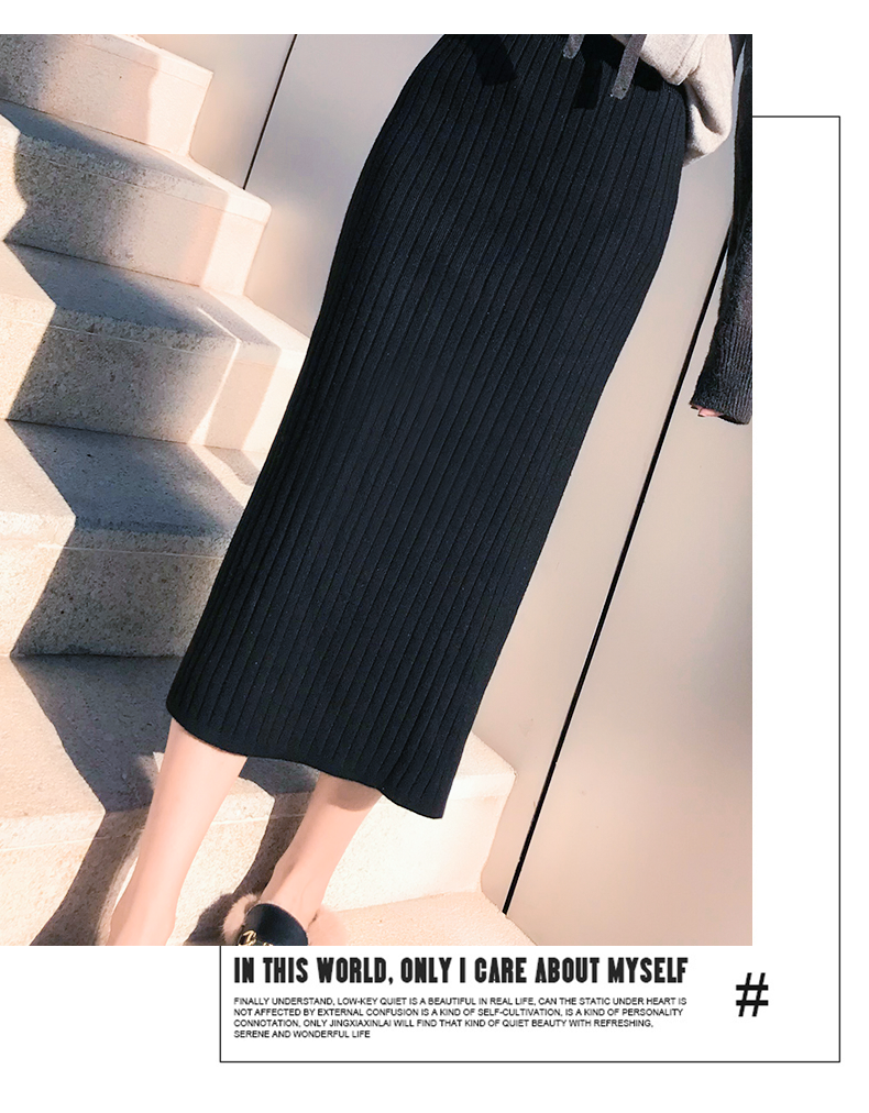 2019新款秋冬毛线chic风针织半身裙中长款修身一步包臀裙女