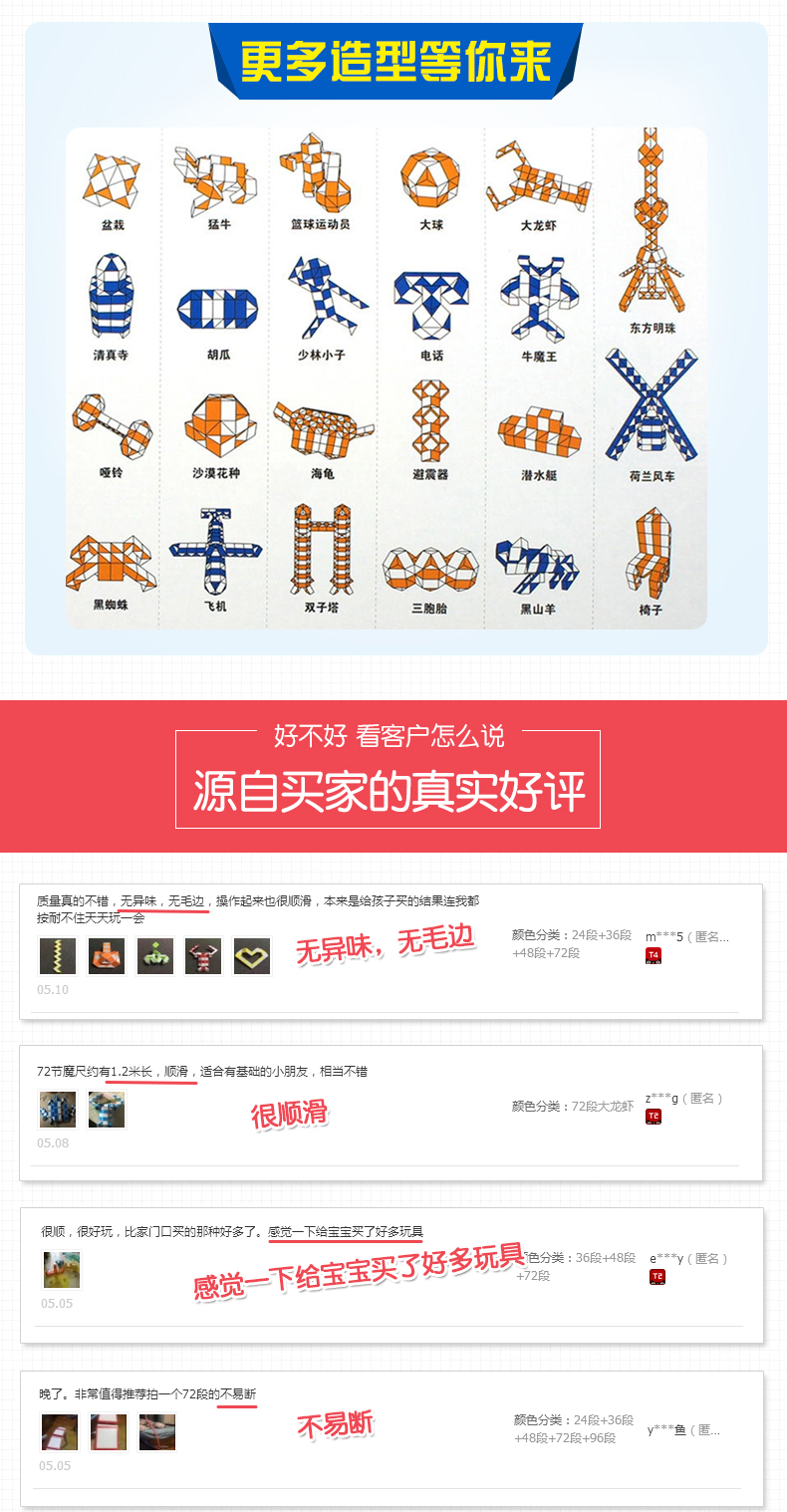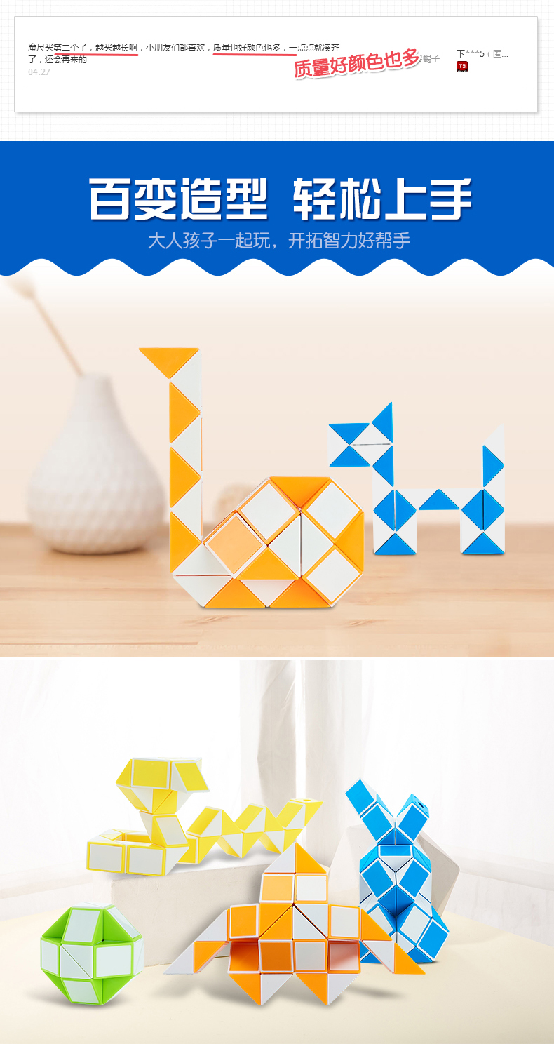 【4.9分超高好评!】培养动手及动脑能力,安全保障,无毒环保,色彩亮丽,顺滑手感,经久耐用,享受乐在其中!百变魔尺等你来挑战!