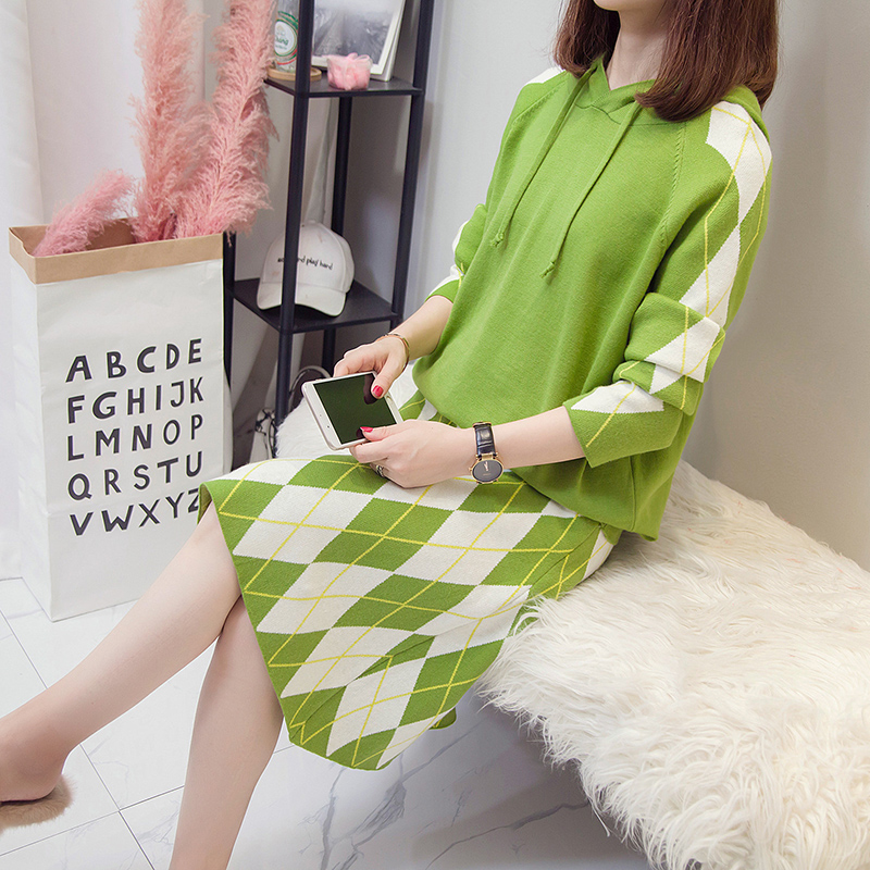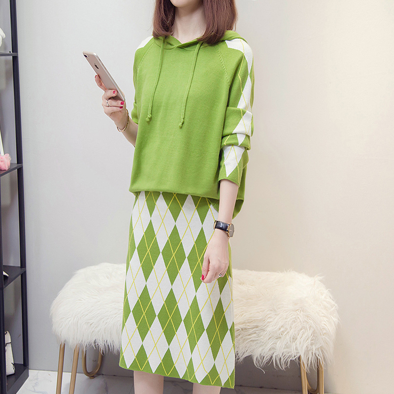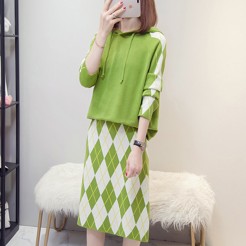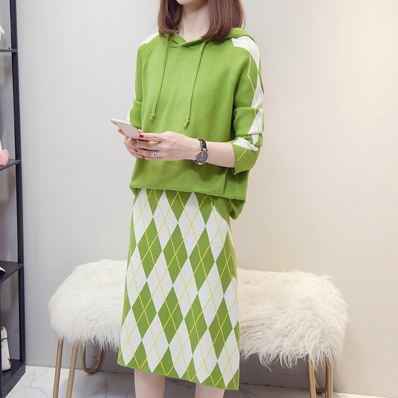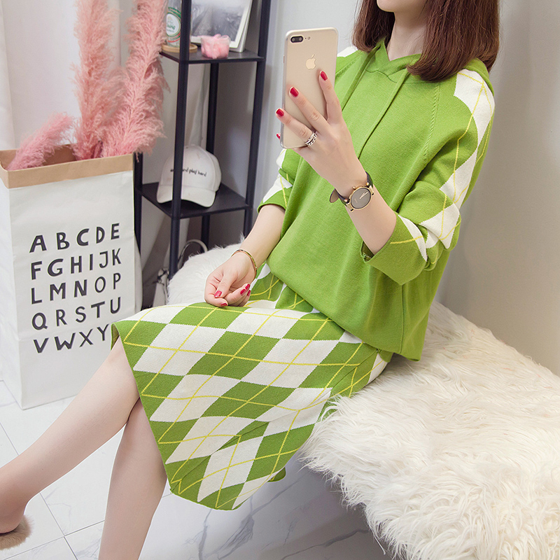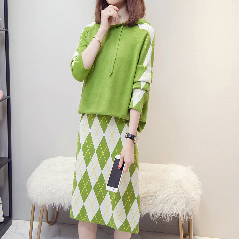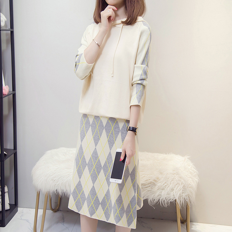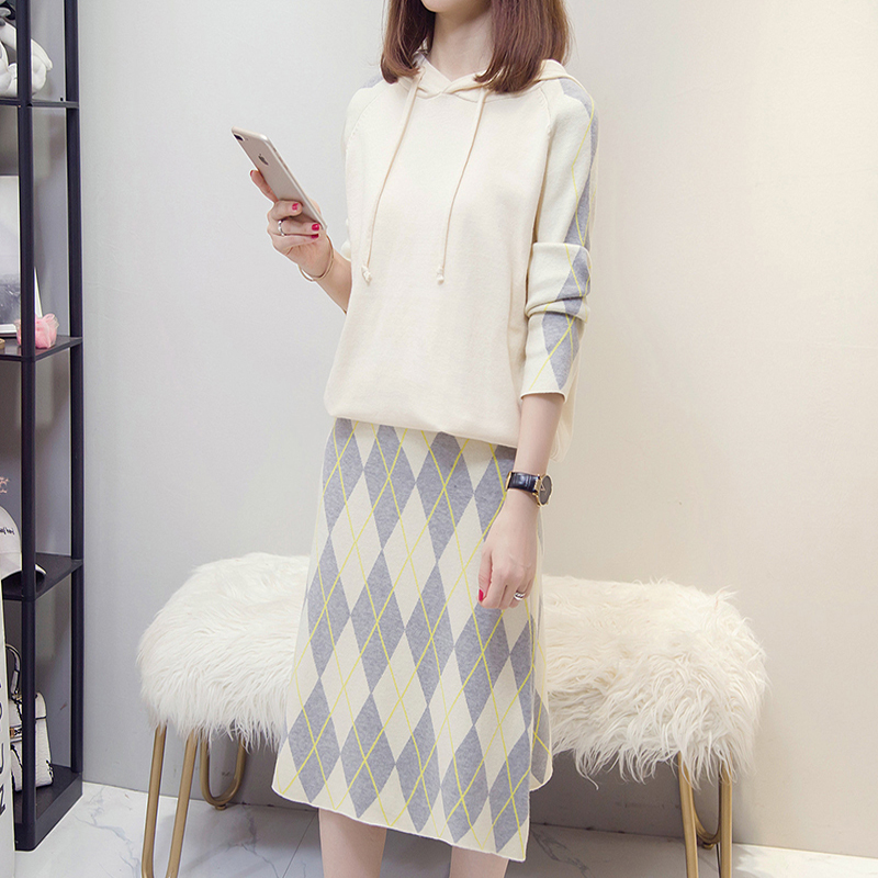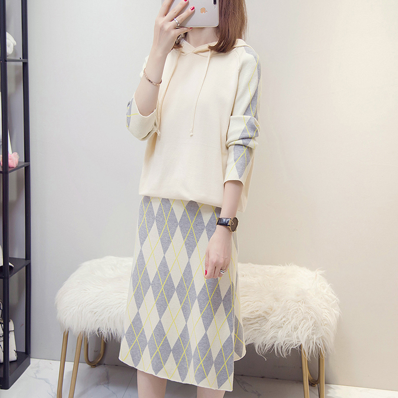 时尚针织上衣套装裙秋冬款2019新款时尚毛衣半身裙小香风两件套潮