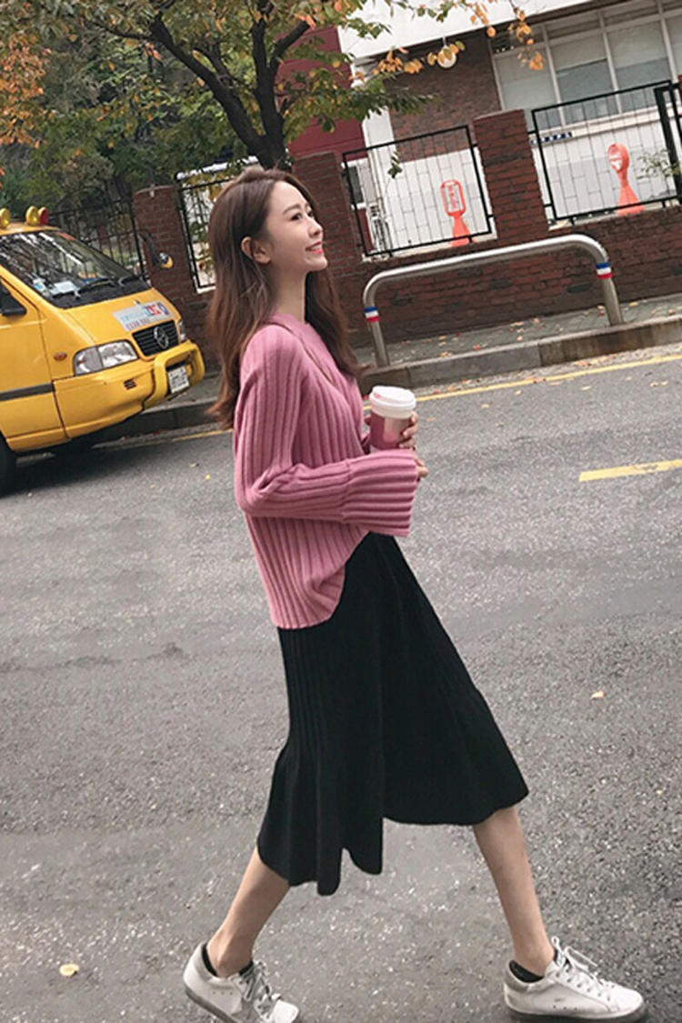 王炸款针织套装,完美诠释法式浪漫~百褶针织半身裙有种能让毛衣变仙的魔力,v领百褶拼接仙气飘飘,走路自带律动,小开叉毛衣,立体显瘦,清新脱俗~