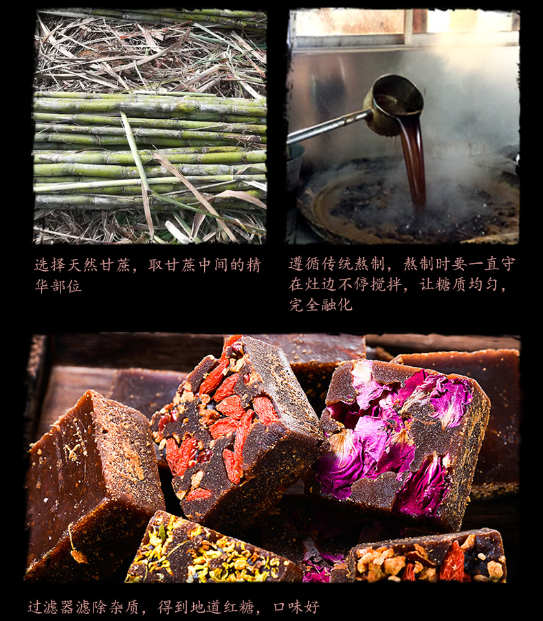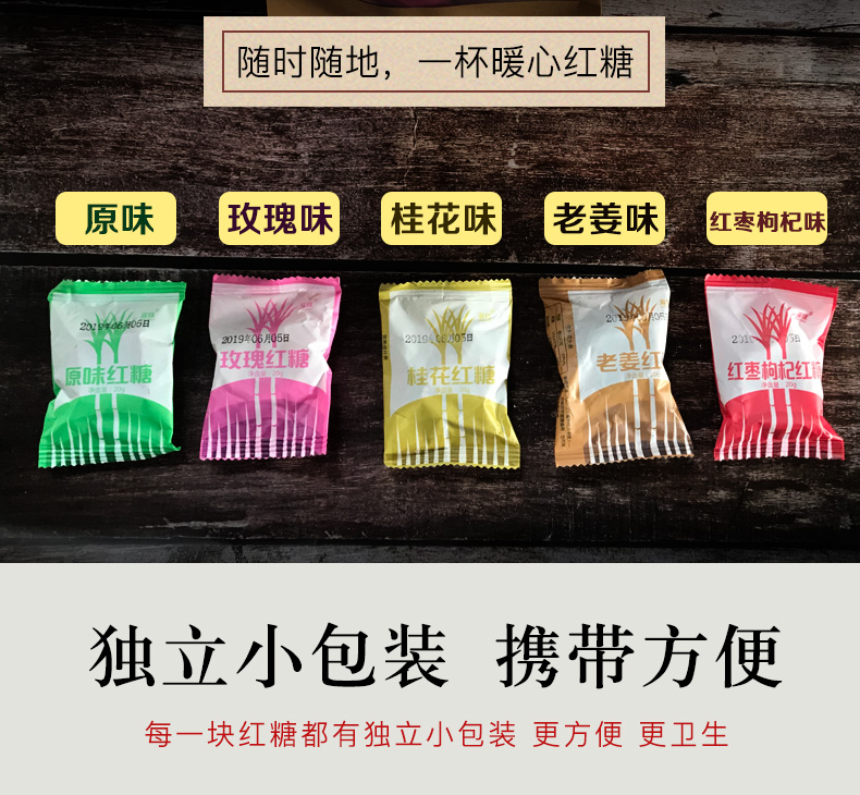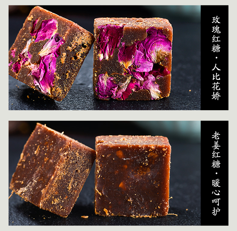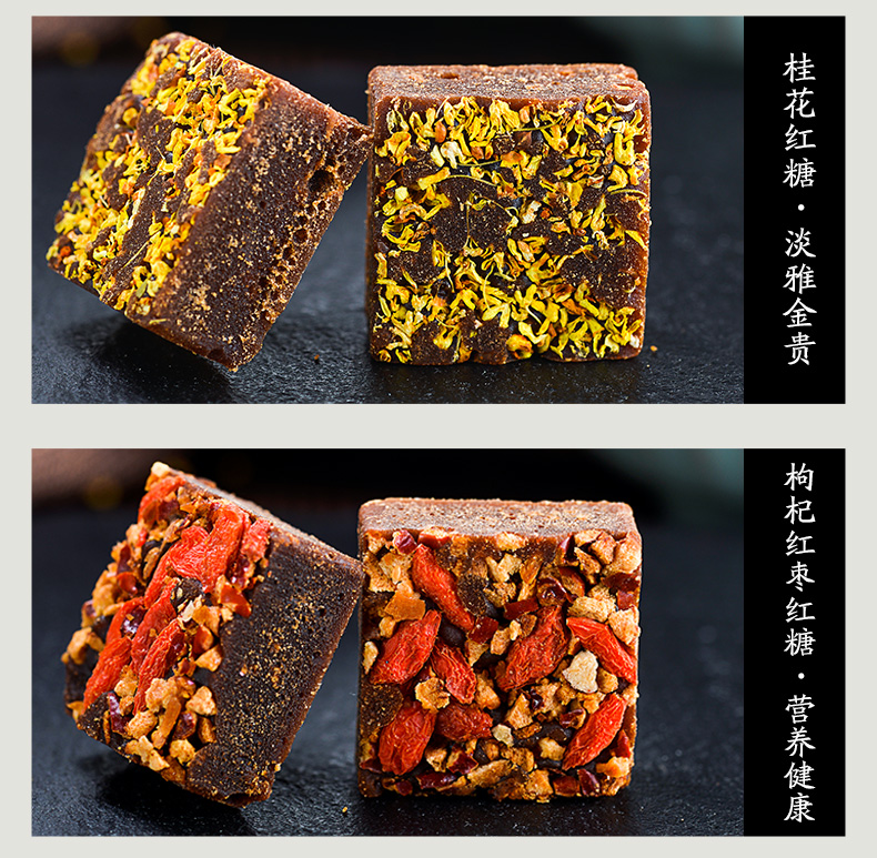 广西土红糖手工古法小袋装桂花玫瑰红枣枸杞老黑糖姜茶大姨妈气血