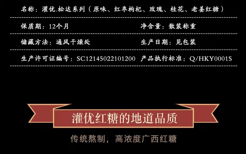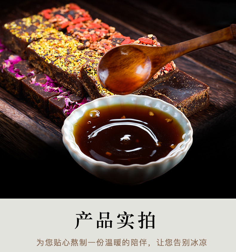 选用优质原料,地道古法纯手工熬制,慢火熬制而成,甜而不腻,口味纯正,色泽诱人,补气养血。生产日期新鲜,五种口味,独立小包装,女人的贴心好闺蜜,补血养颜,守护姨妈期!!