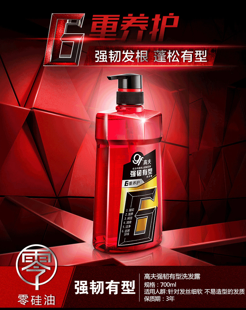 gf/高夫男士强韧有型洗发露700ml洗发水头皮护理清洁蓬松洗发水