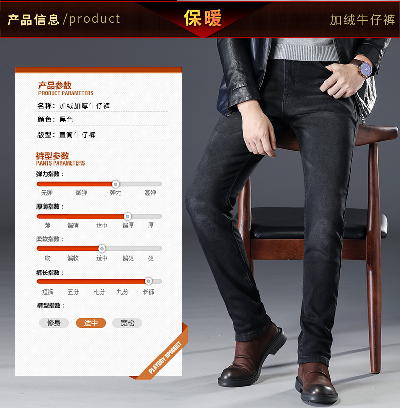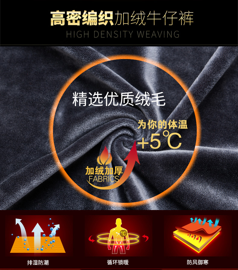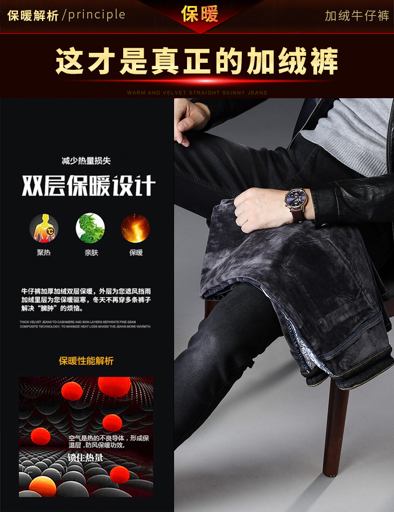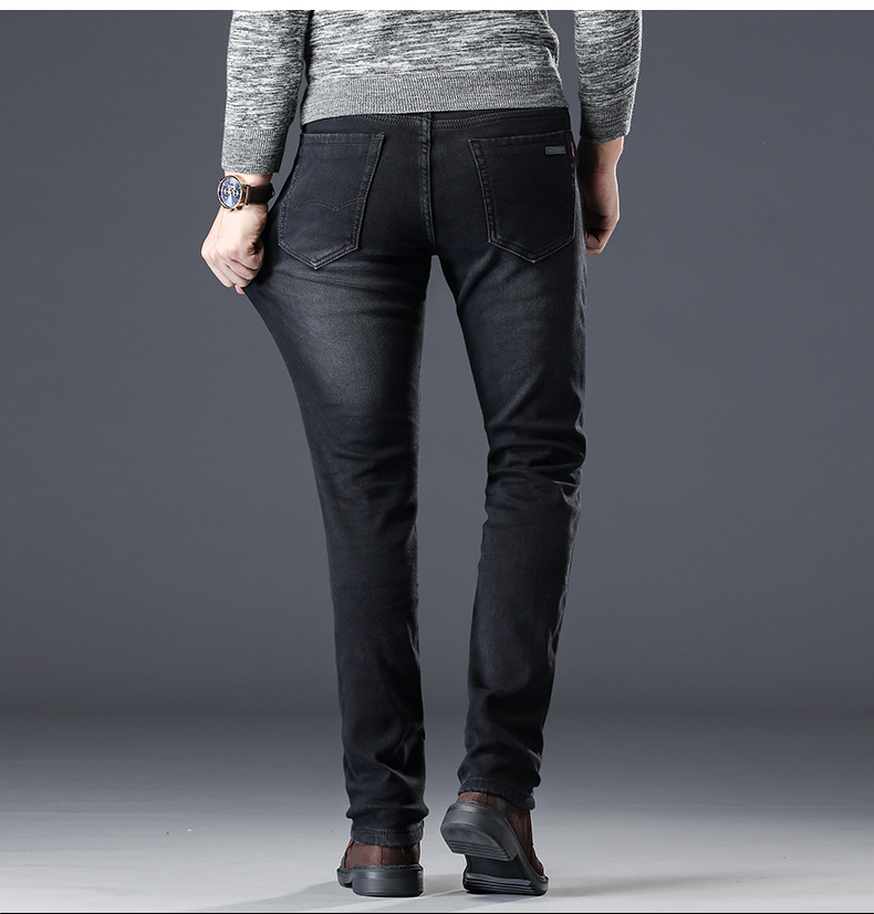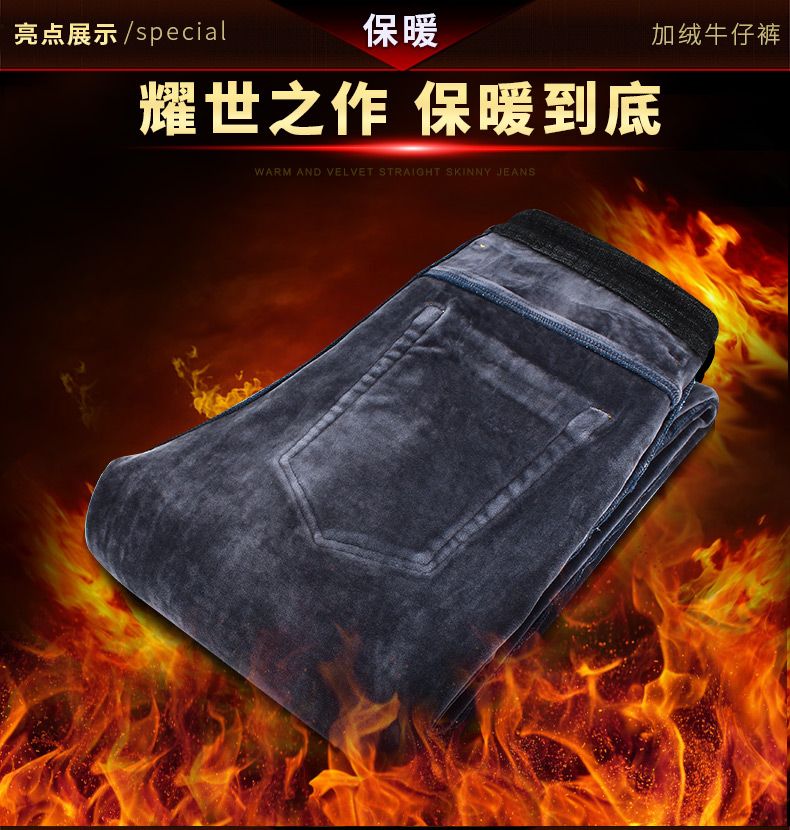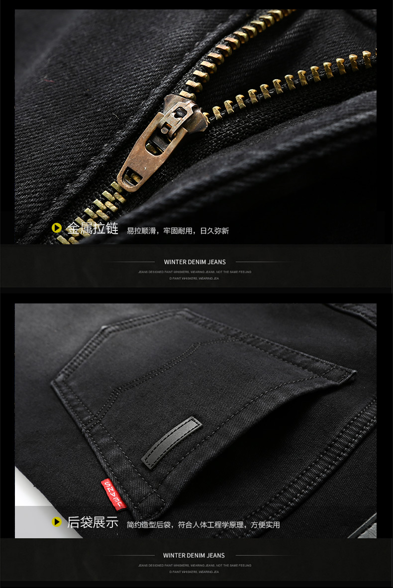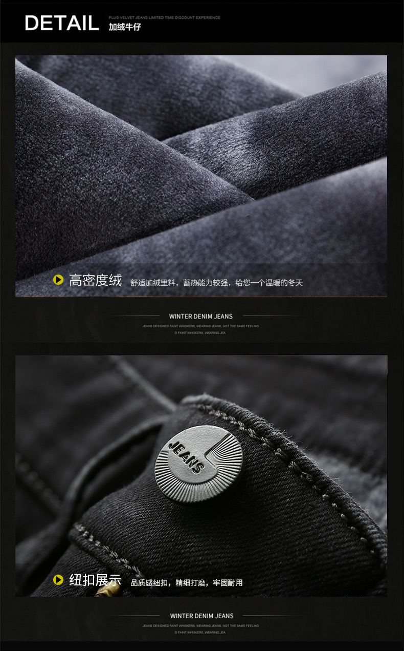 冬季男士加绒加厚修身牛仔裤男直筒男式弹力带绒黑色宽松牛子裤潮