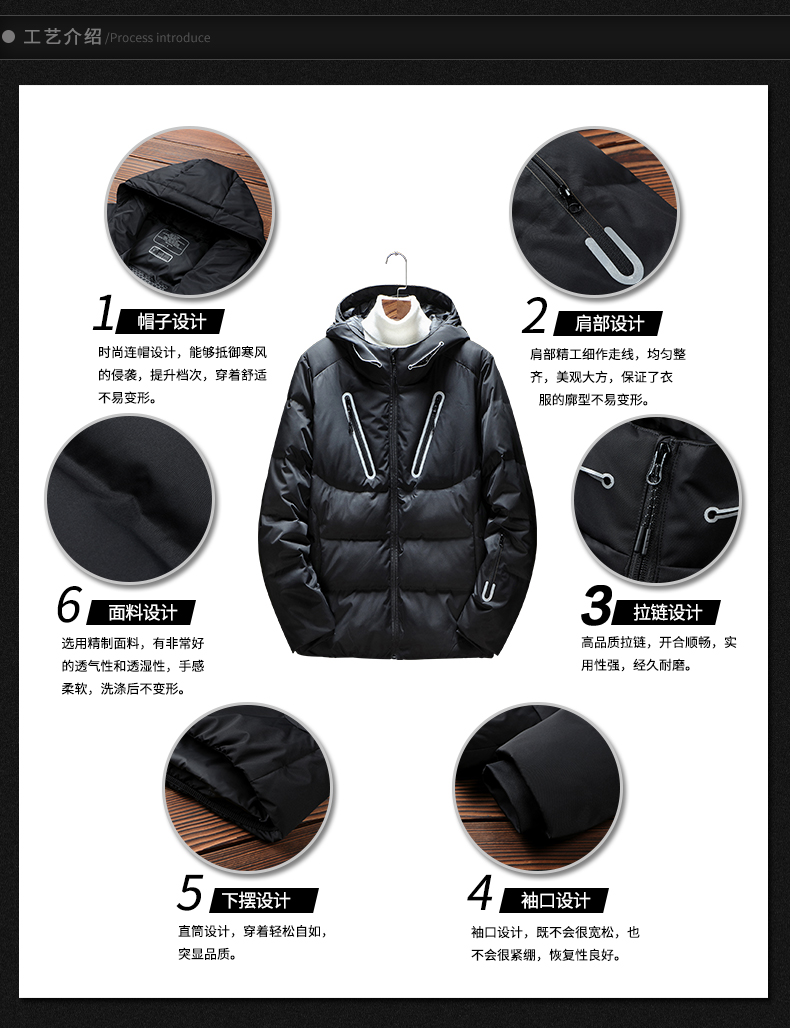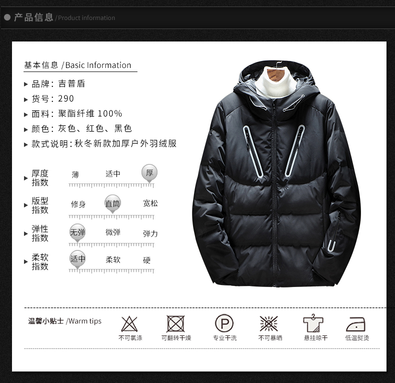 吉普盾2019冬季男士户外款加厚休闲羽绒服短款连帽防风防寒外套
