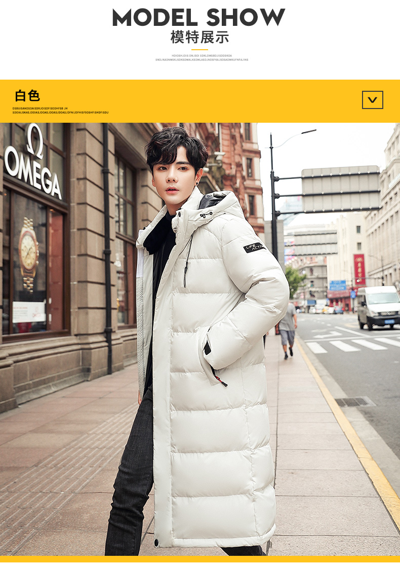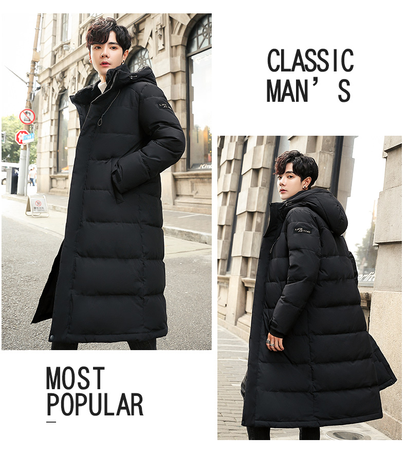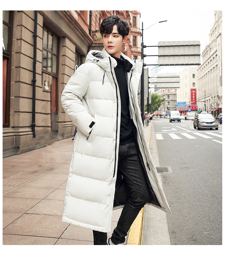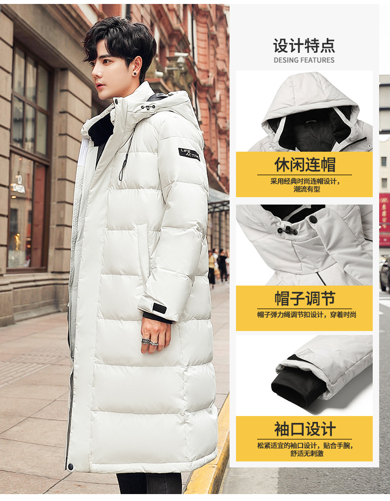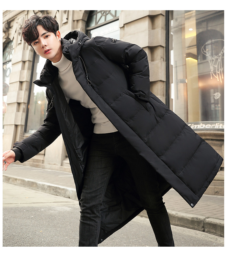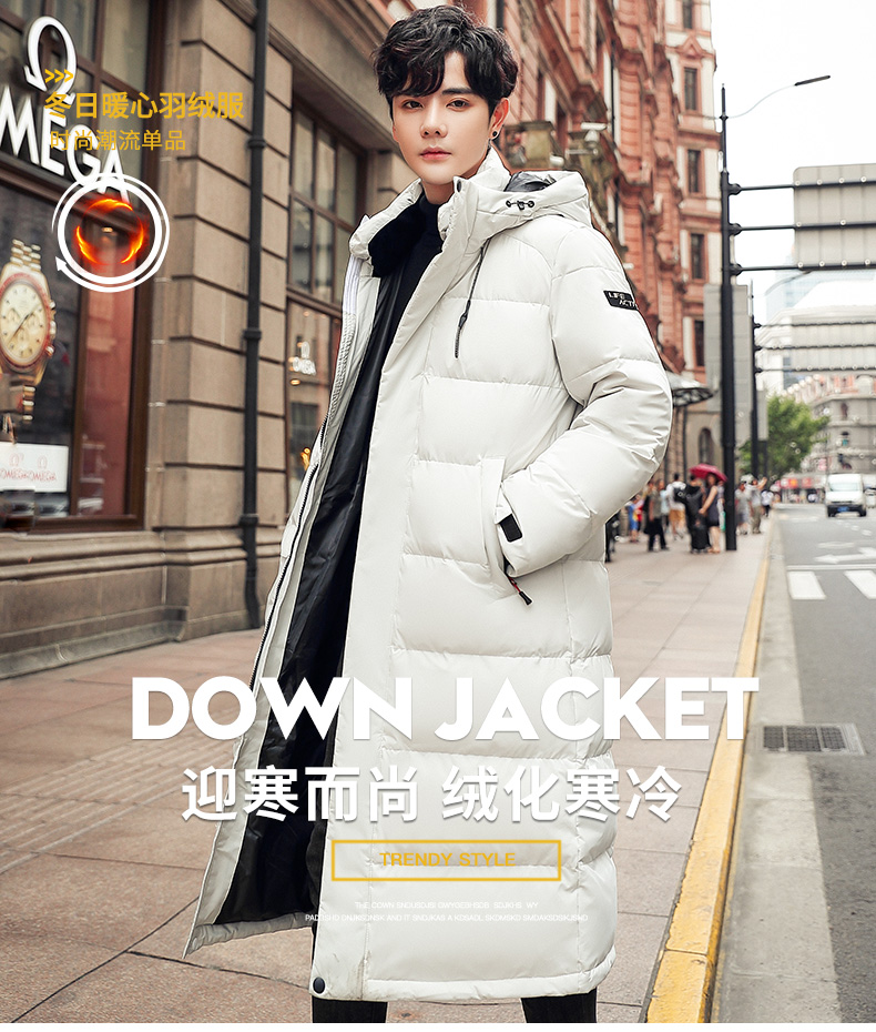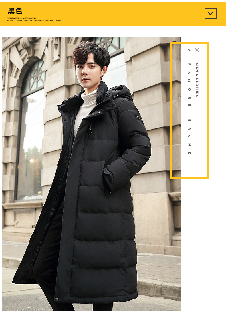 吉普盾2019冬季新品长款男士修身羽绒服青年过膝加厚外套潮流时尚