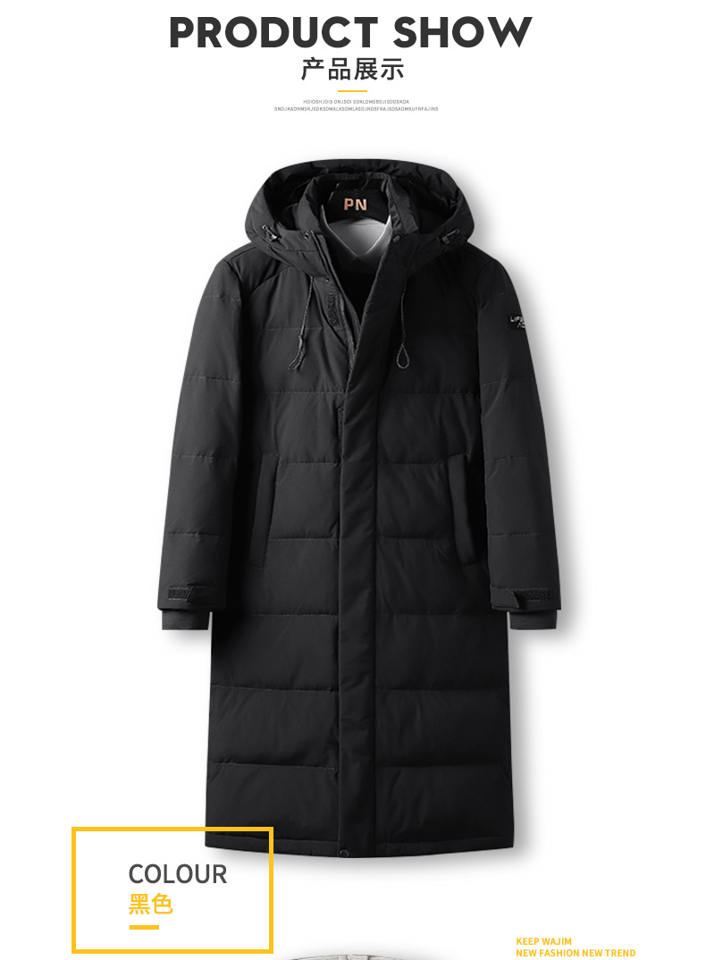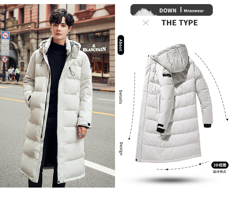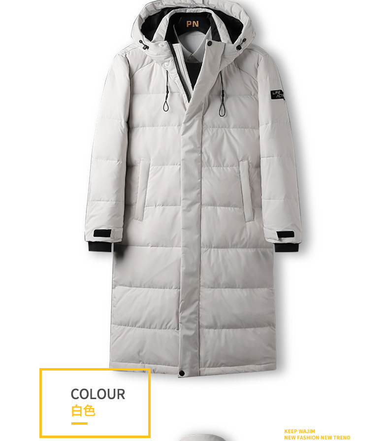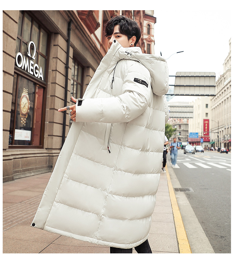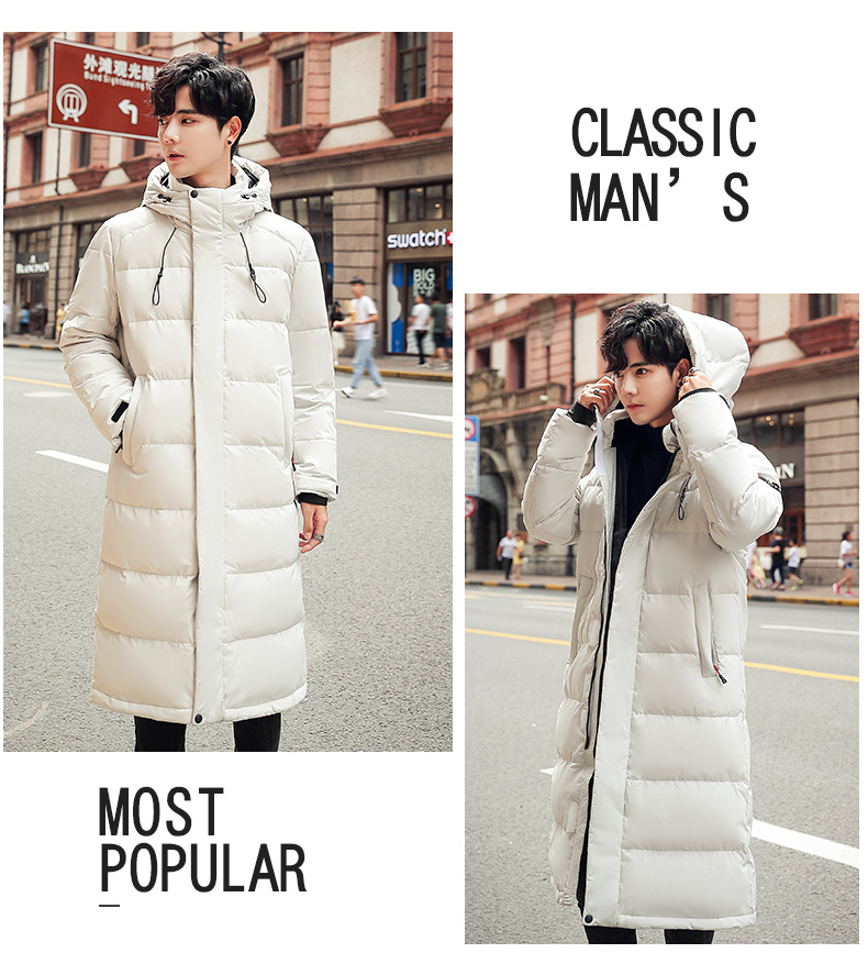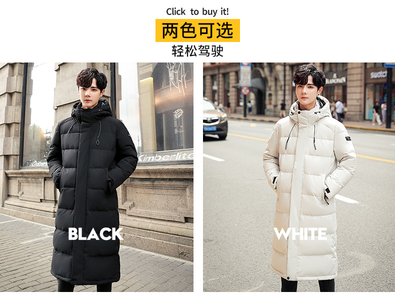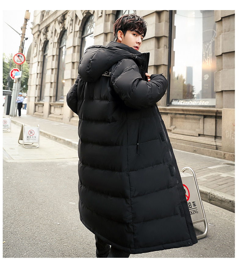 吉普盾2019冬季新品长款男士修身羽绒服青年过膝加厚外套潮流时尚