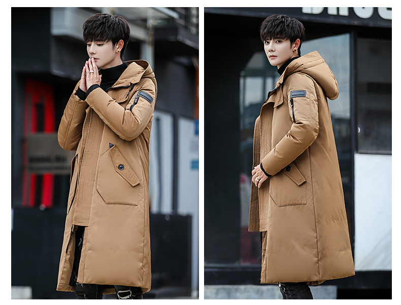 吉普盾2019冬季新款男士中长款白鸭绒羽绒服连帽加厚外套潮流男装
