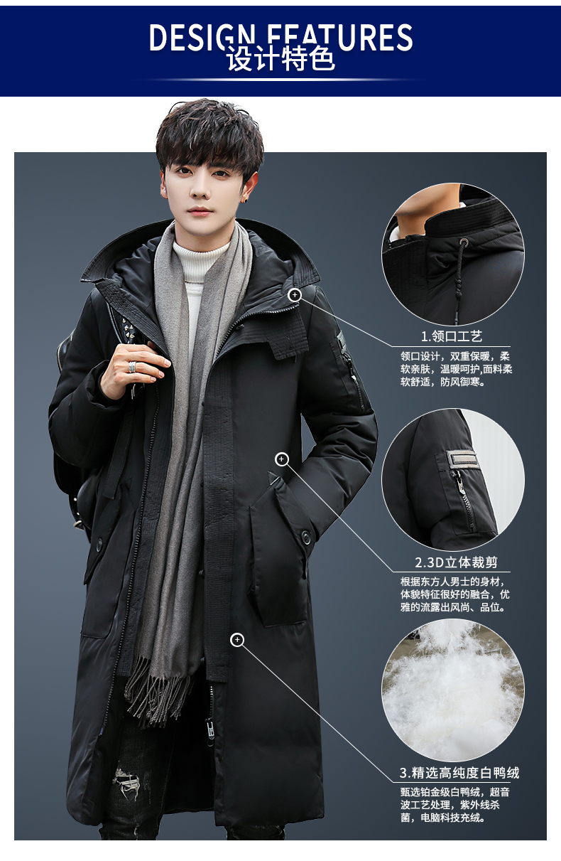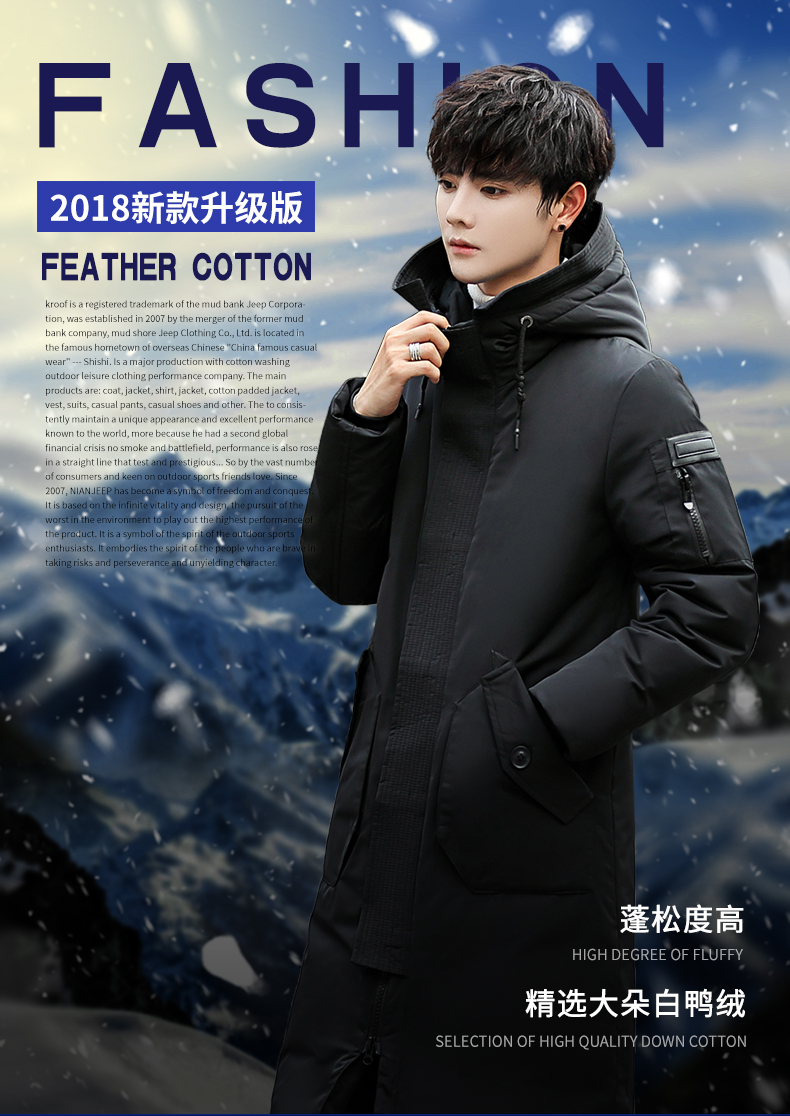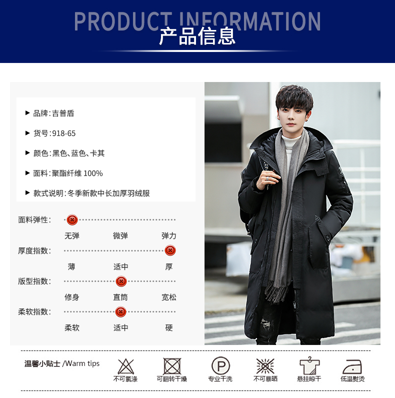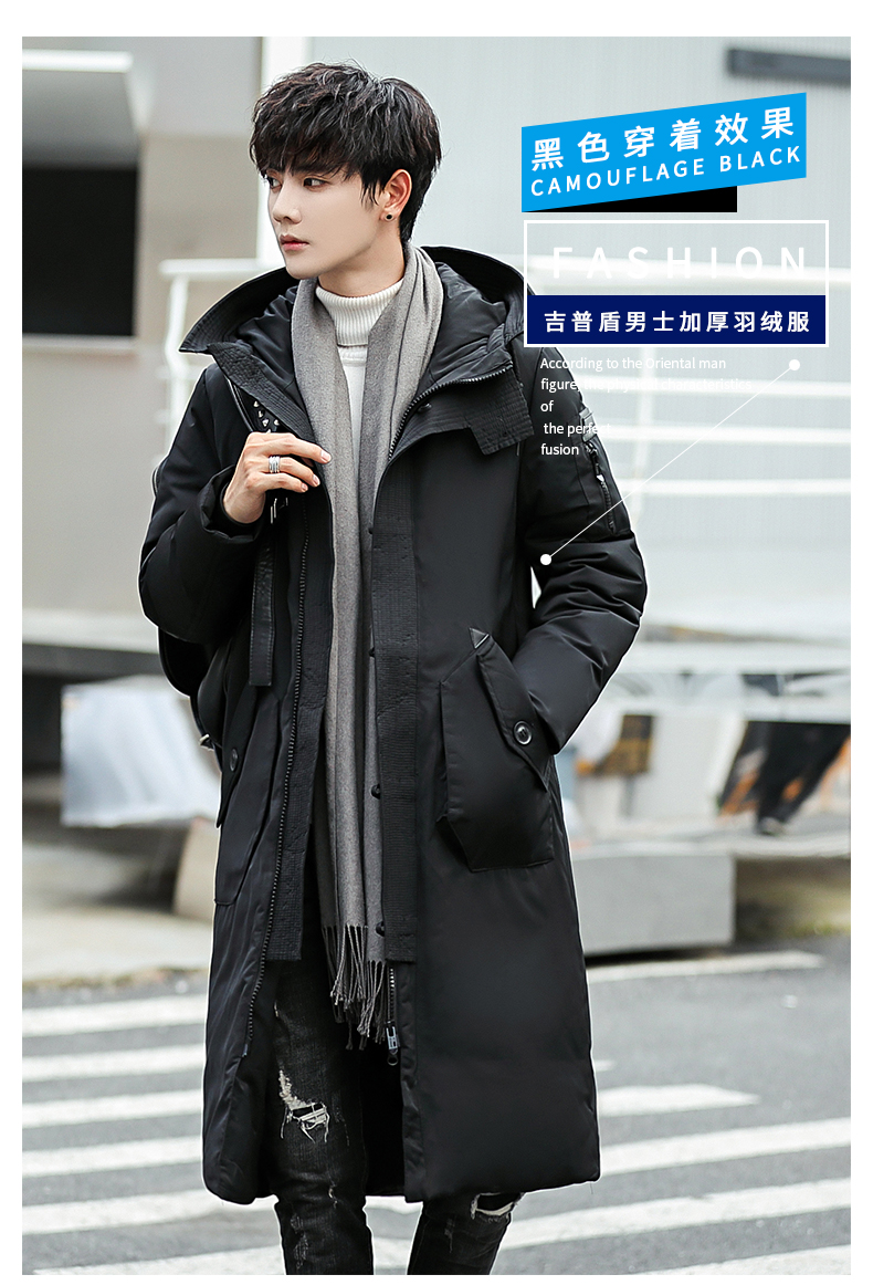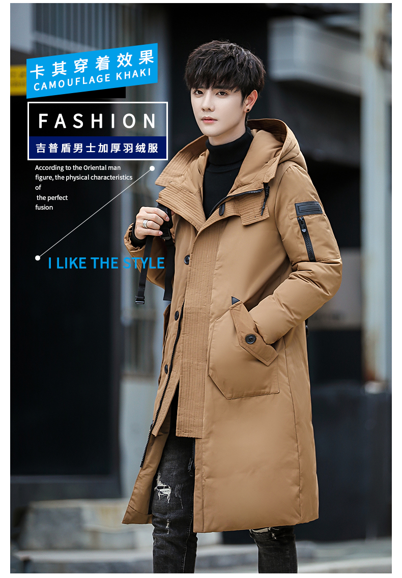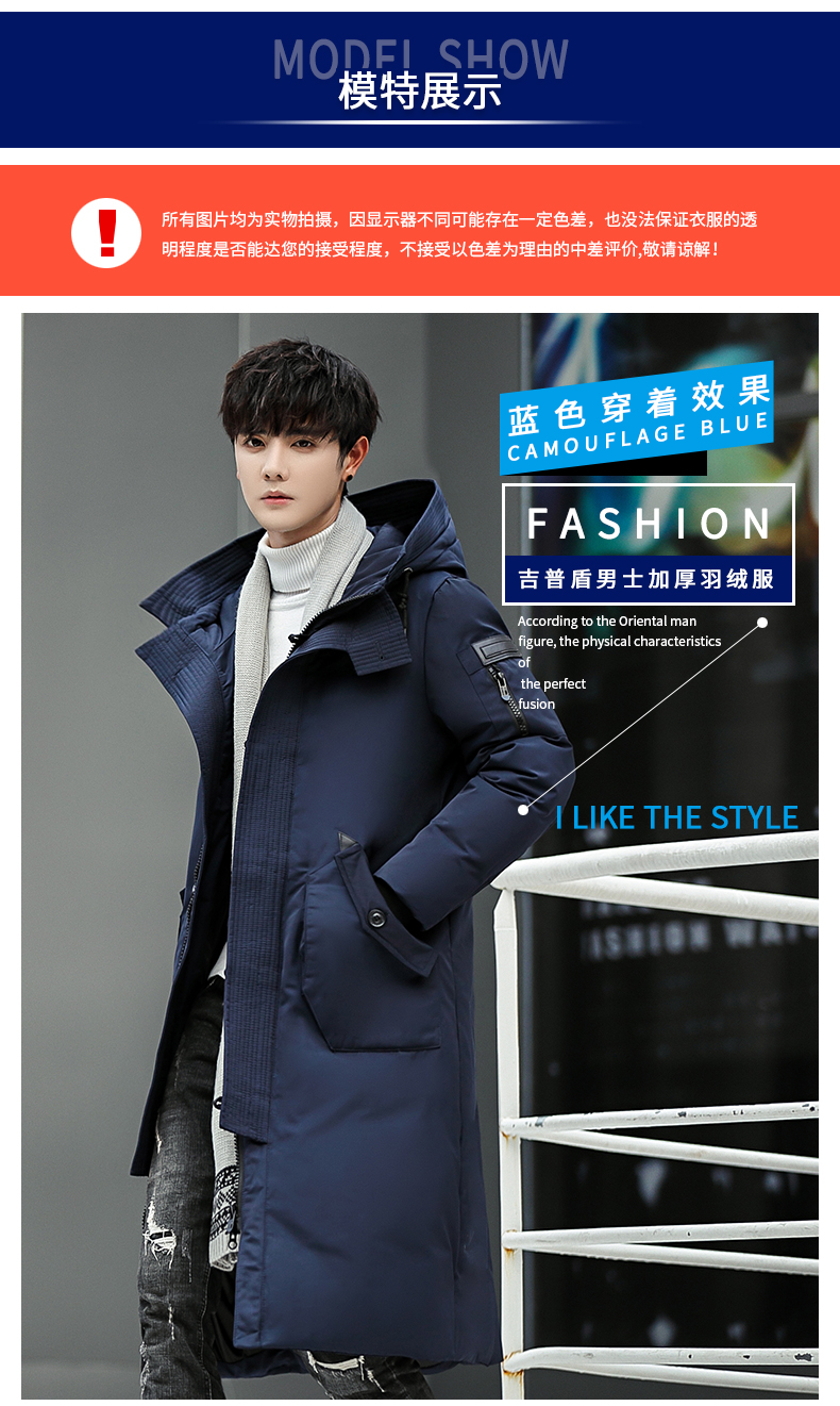 【吉普盾热销爆款】受众多帅哥青睐的羽绒服!齐膝中长款,帅气值5星,优质白鸭绒填充,舒适保暖,3D定制防绒内胆,严密缝合,拒绝钻绒!