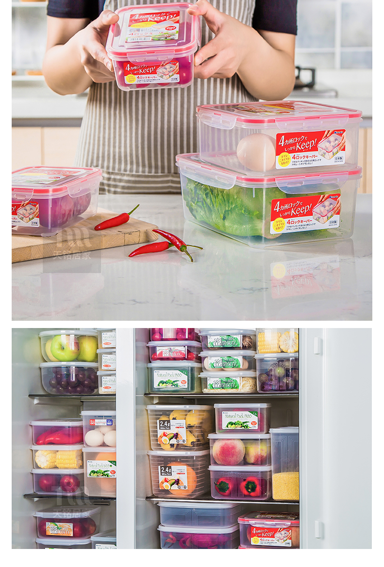 日本进口冰箱收纳盒水果保鲜盒专用厨房塑料长方形冷冻食品密封盒