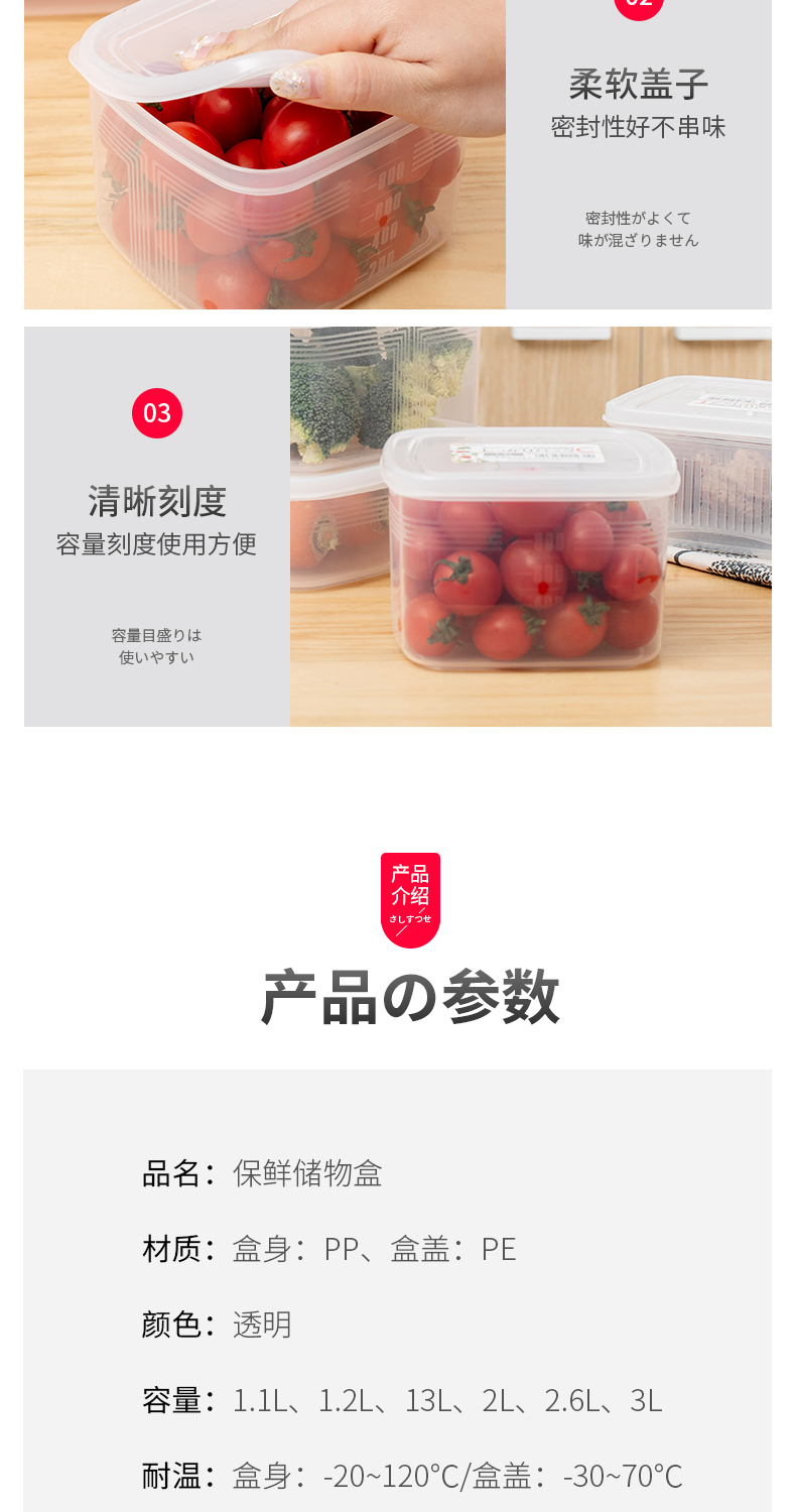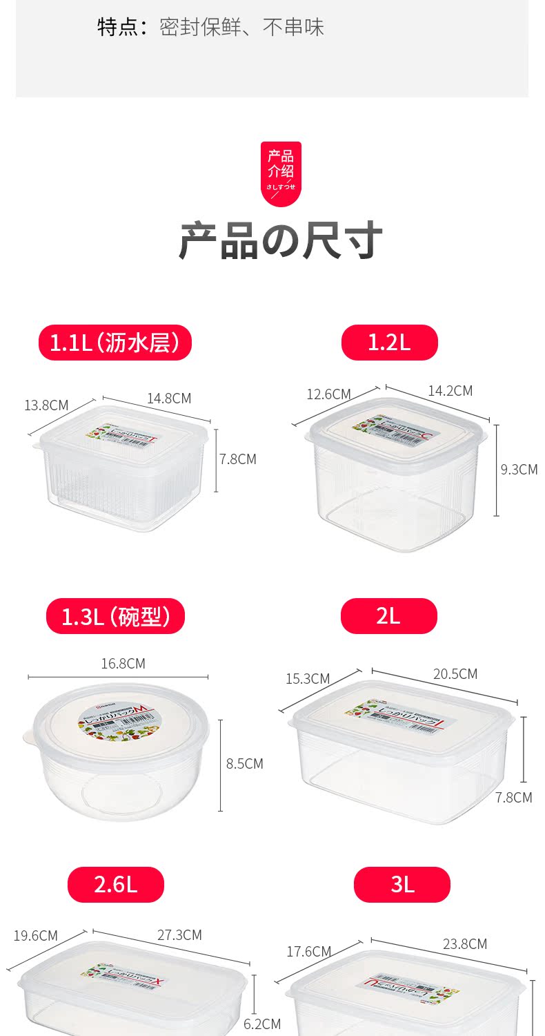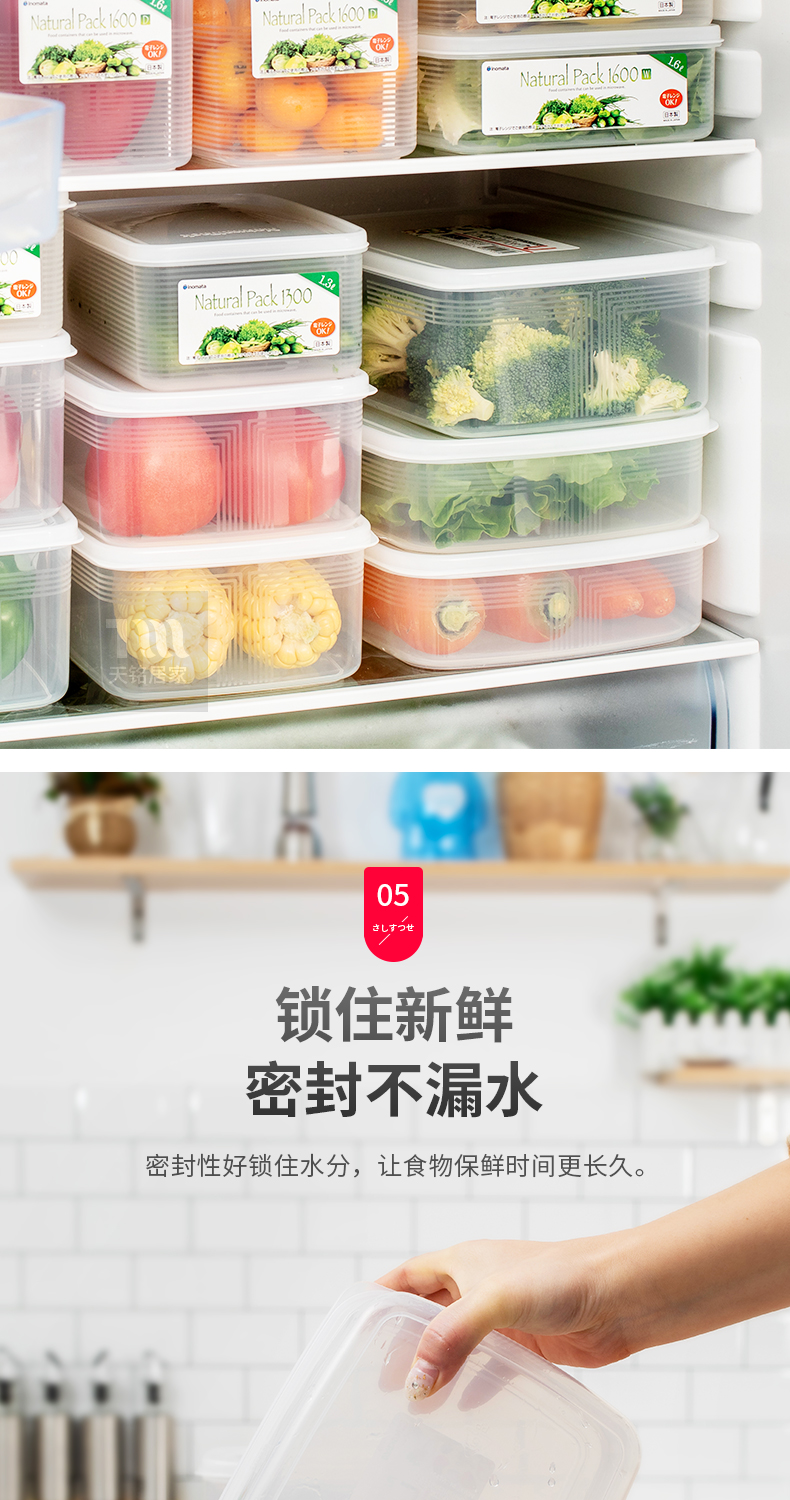 【kinbata】日本原装进口,采用优质PP材质,无毒无味放心使用,将冰箱收纳整齐不串味,食材长久保鲜,内置沥水层食物免浸泡。可冷冻可加热可微波炉解冻,居家好收纳好帮手,您值得拥有。