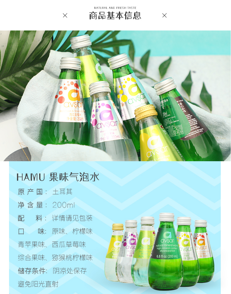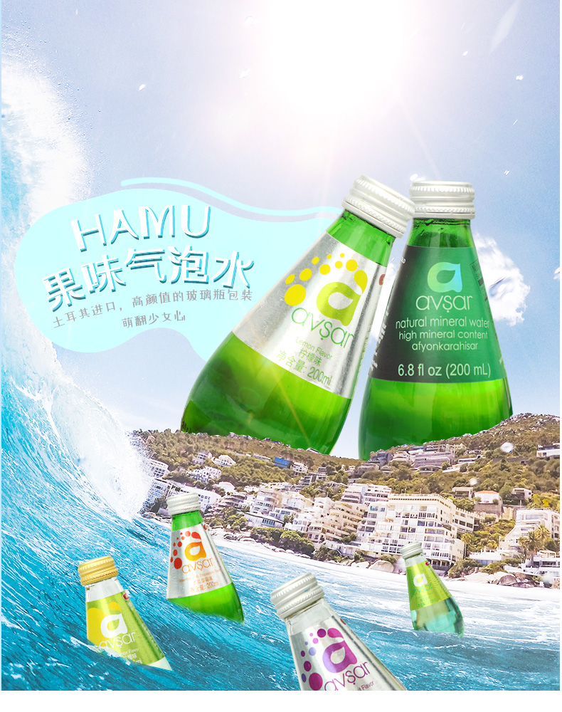 8瓶土耳其进口Hamu矿泉气泡水avsar网红饮料巴黎风格苏打水整箱