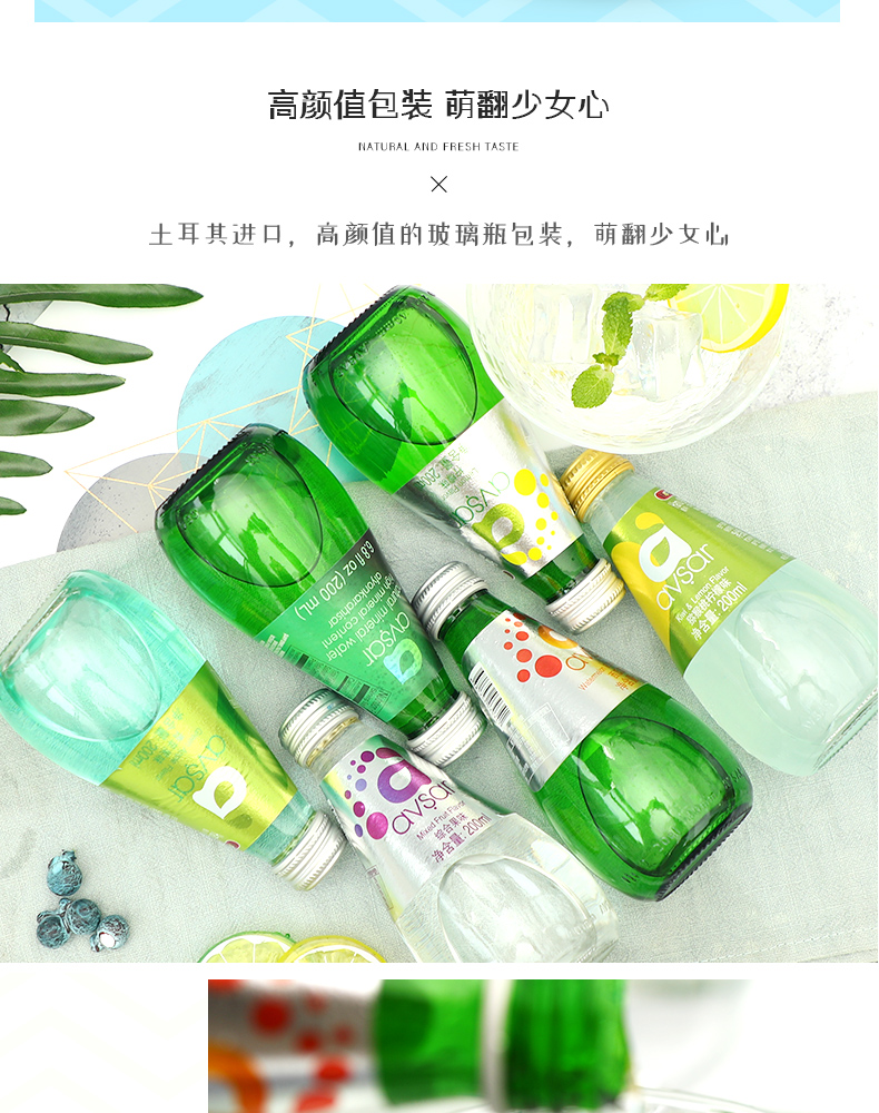土耳其进口网红饮料,用矿泉水配制的果味气泡水,5种水果味任选,脂肪含量0,健康更轻松,自然清新的口感