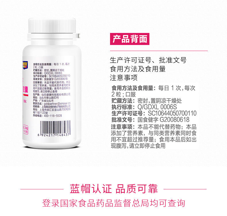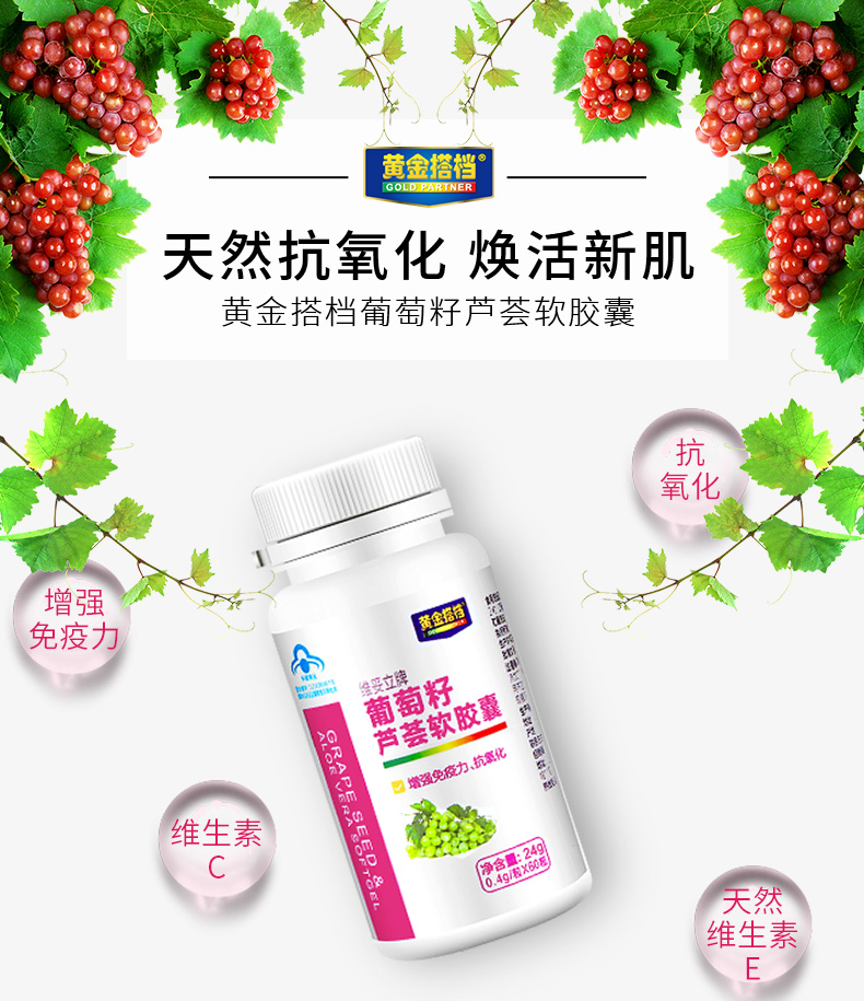 黄金搭档法国葡萄籽60粒,抗氧化,蓝帽子保障,精选法国葡萄籽提取物,价格实惠