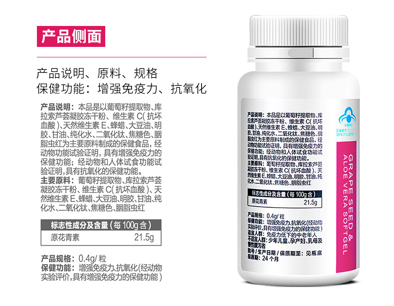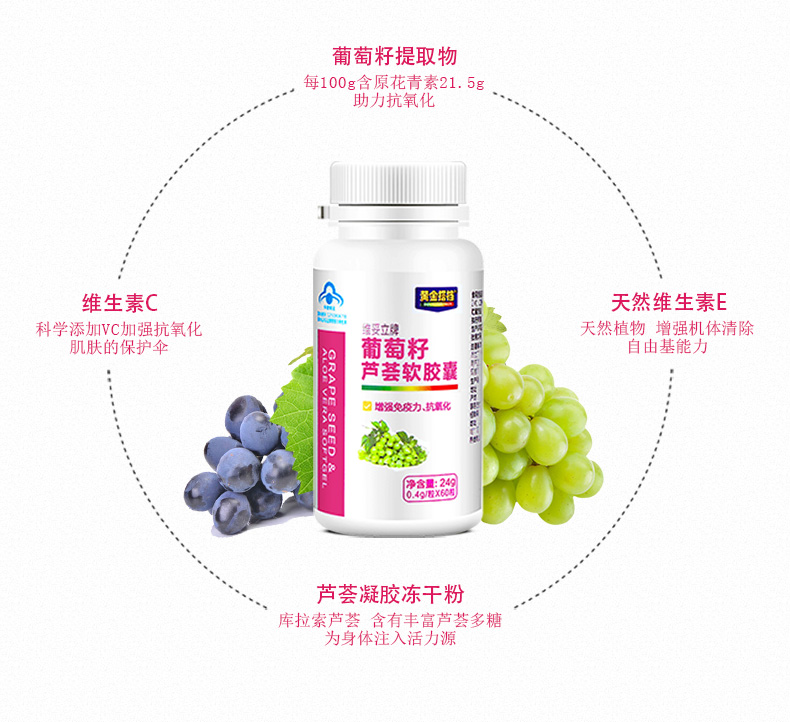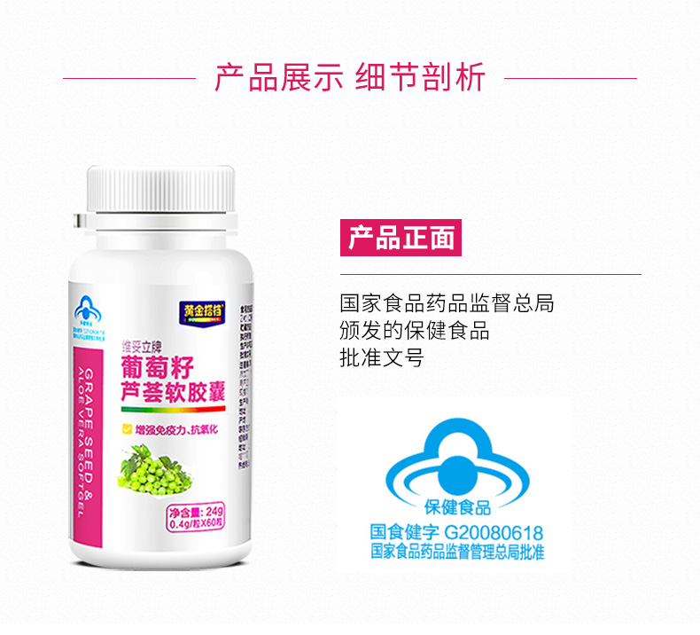 买二送一 黄金搭档法国葡萄籽芦荟软胶囊60粒增强免疫力抗氧化女