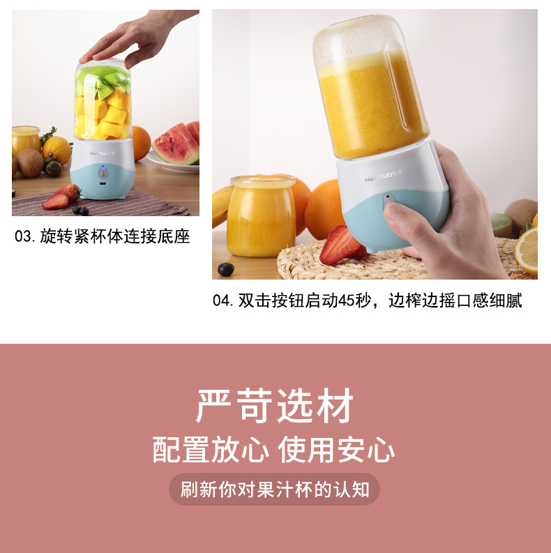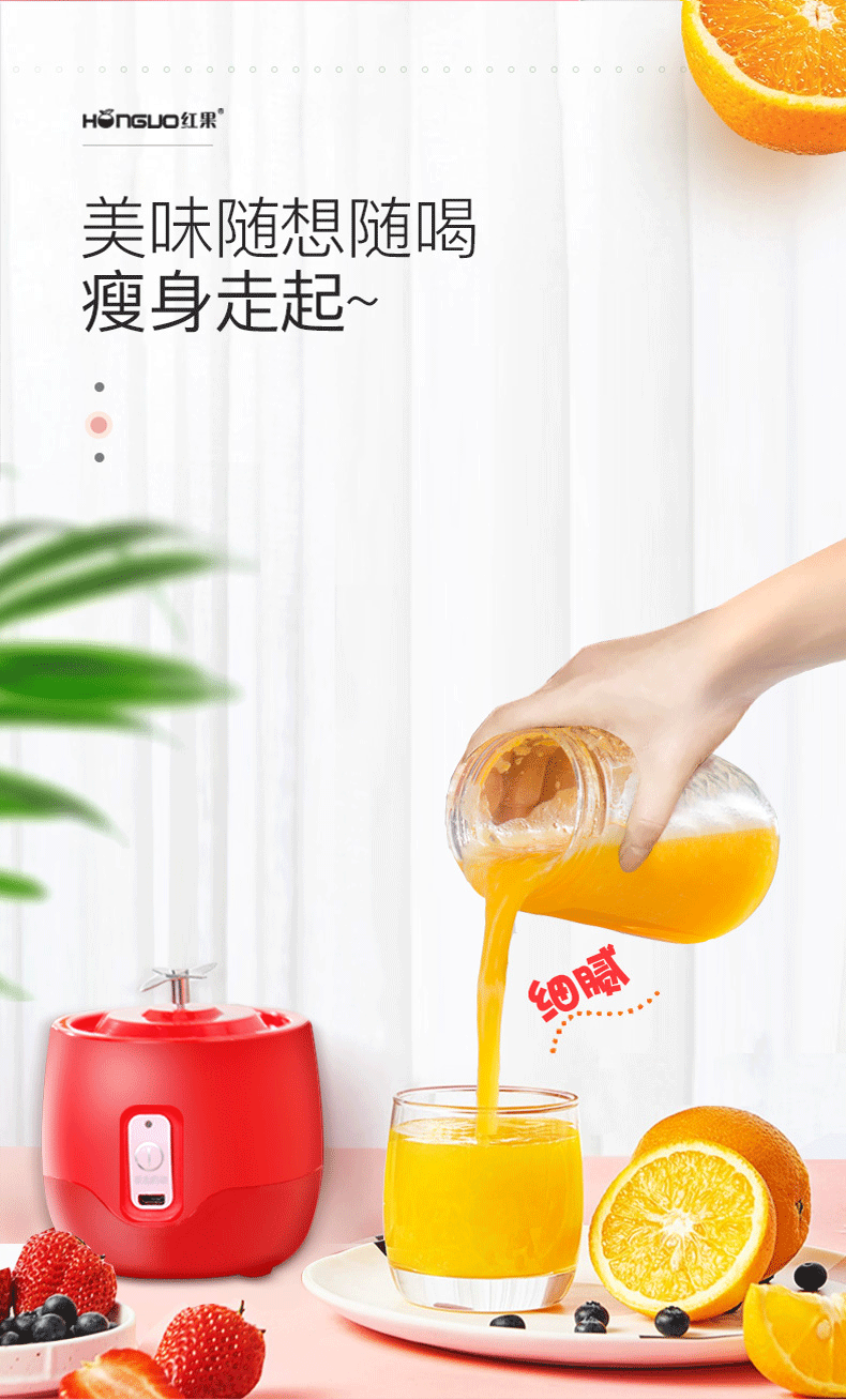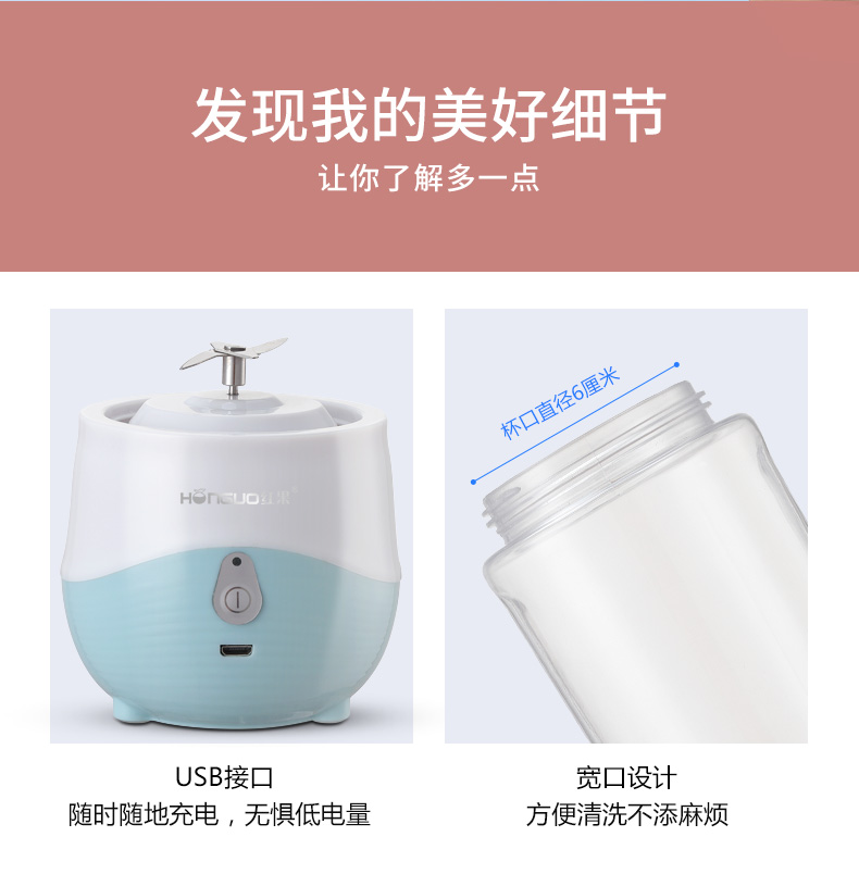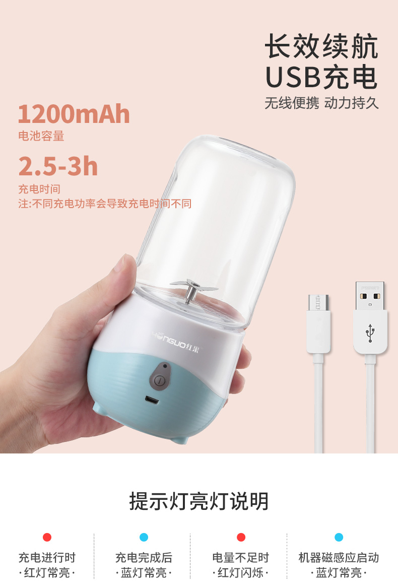 红果移动充电榨汁机迷你学生宿舍小型网红榨汁杯电动便携式果汁杯