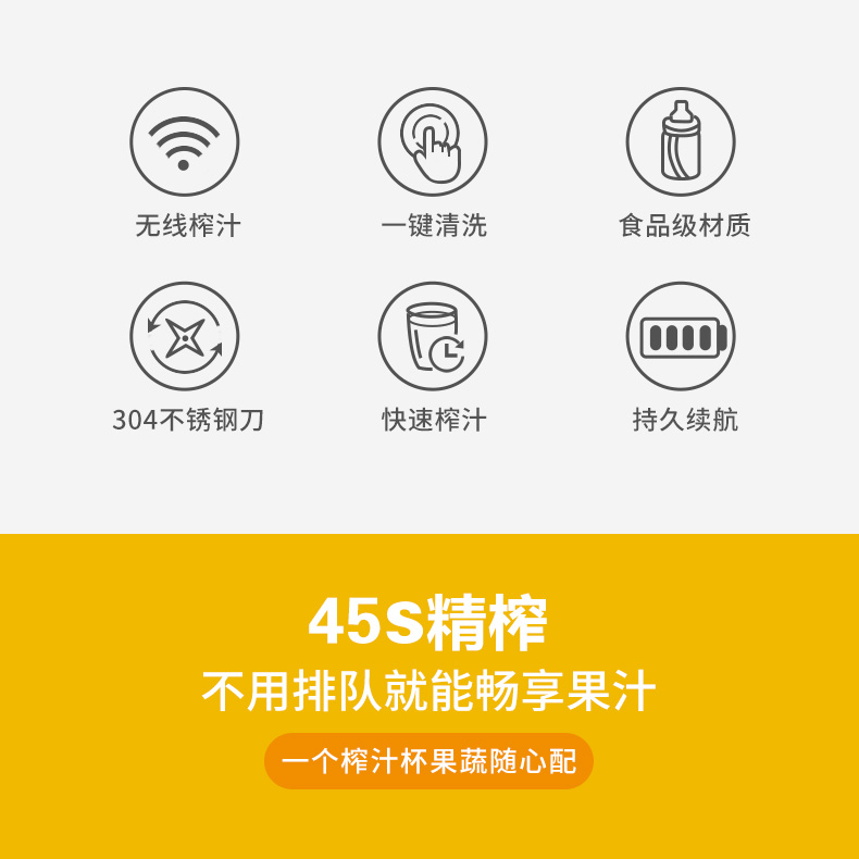 【正品保证,1年内免费换新】无线鲜榨,居家出行随身带!9秒出汁,食品级材质,安全更放心!一键自动清洗,小身材,大容量,乐享美好时光!果蔬随心配,做自己的营养管家,速抢【赠运费险】