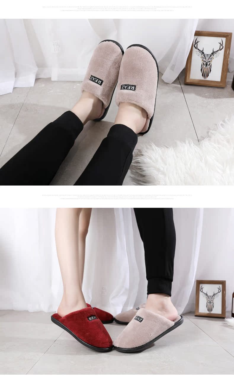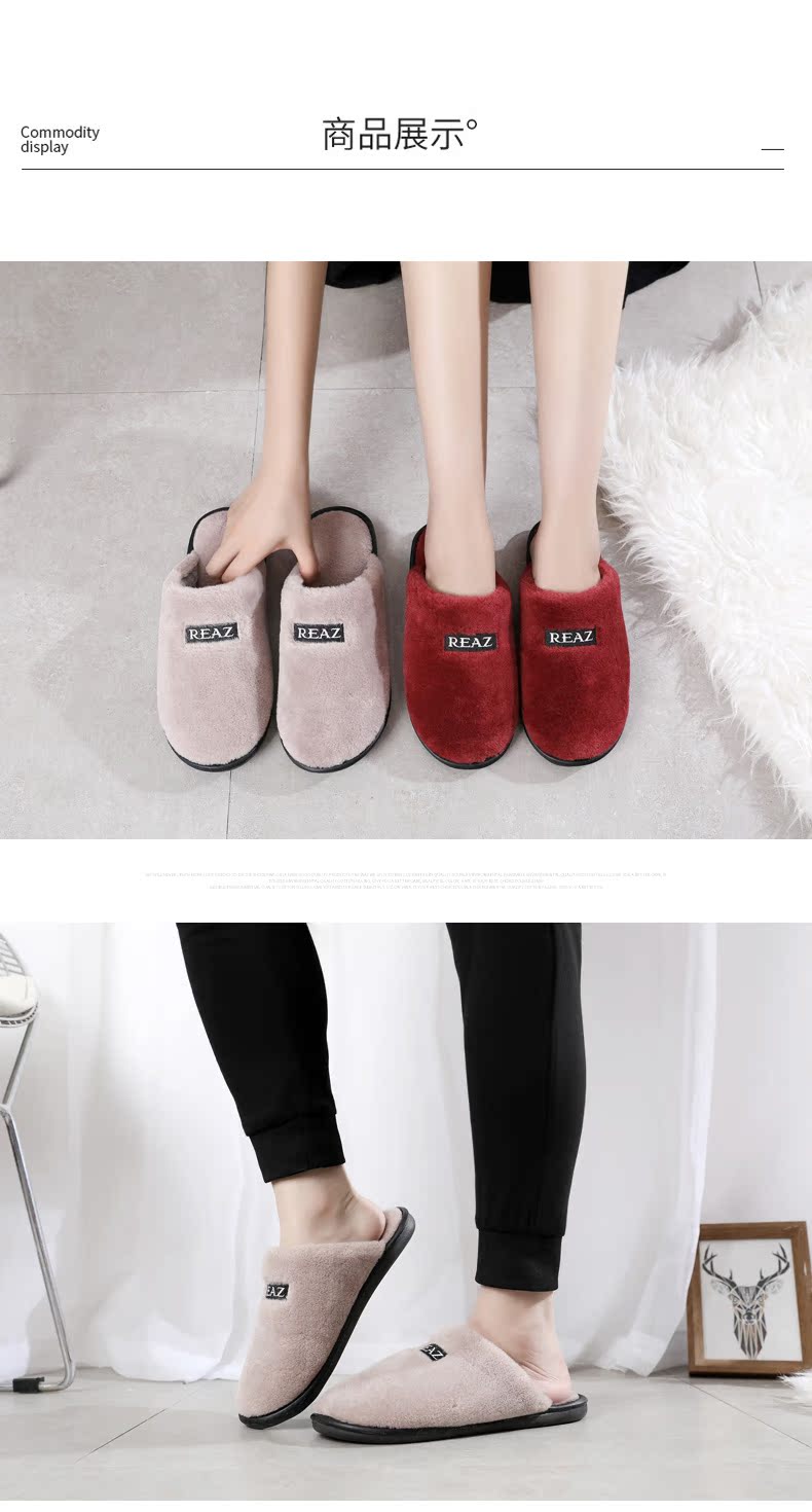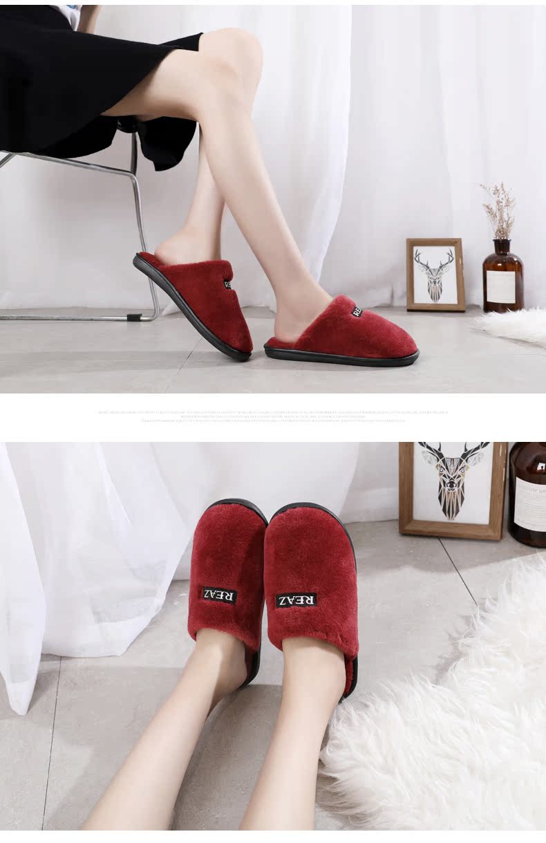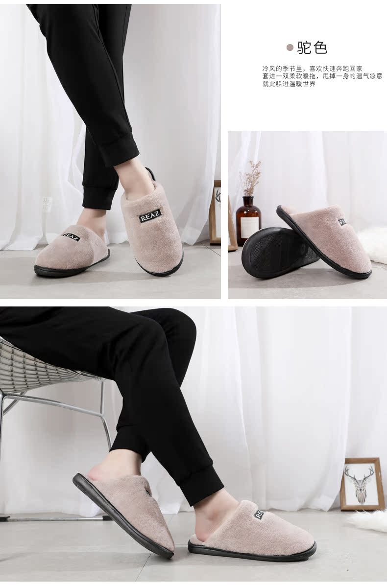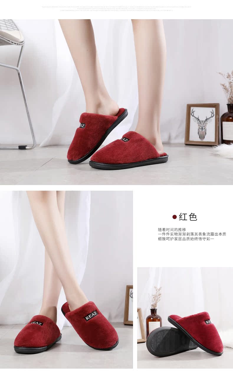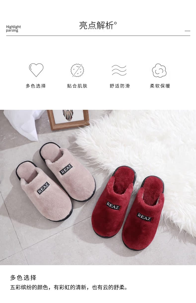 瑞兹冬季棉拖鞋家用新款韩版毛绒情侣家居室内防滑情侣毛拖鞋