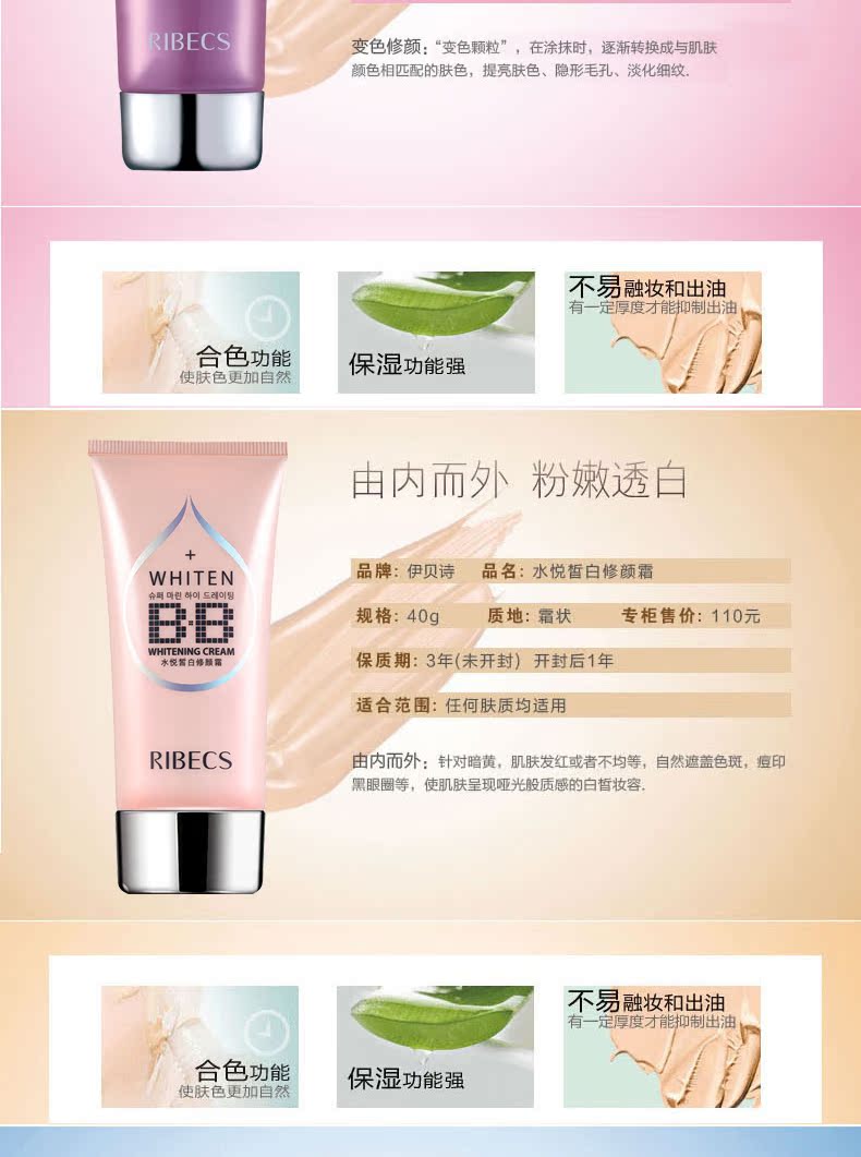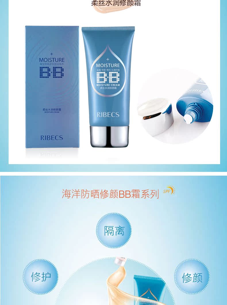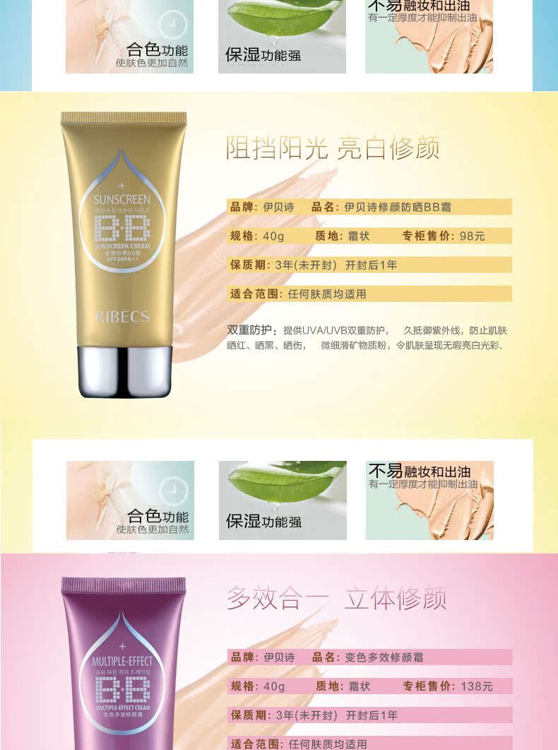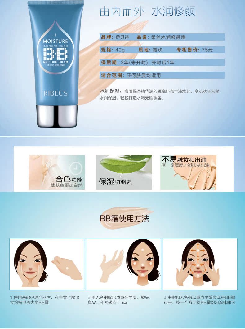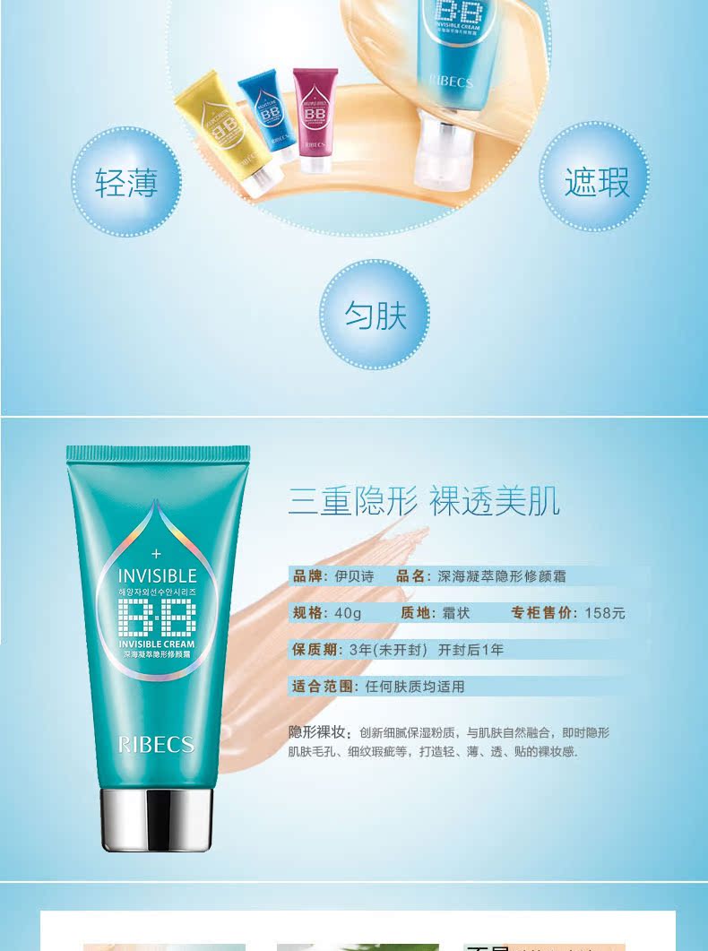 伊贝诗BB霜女学生保湿隔离裸妆遮瑕持久控油粉底液旗舰店官网正品