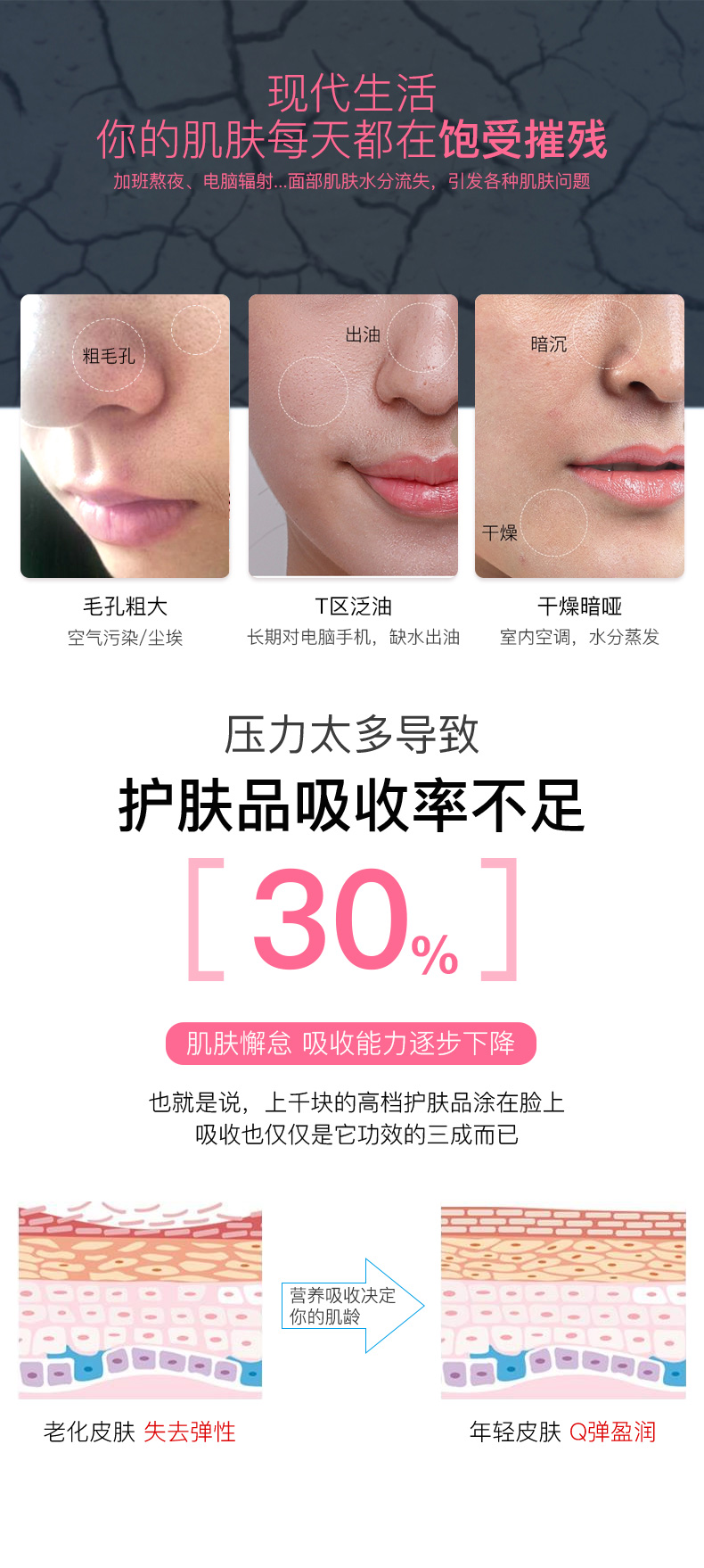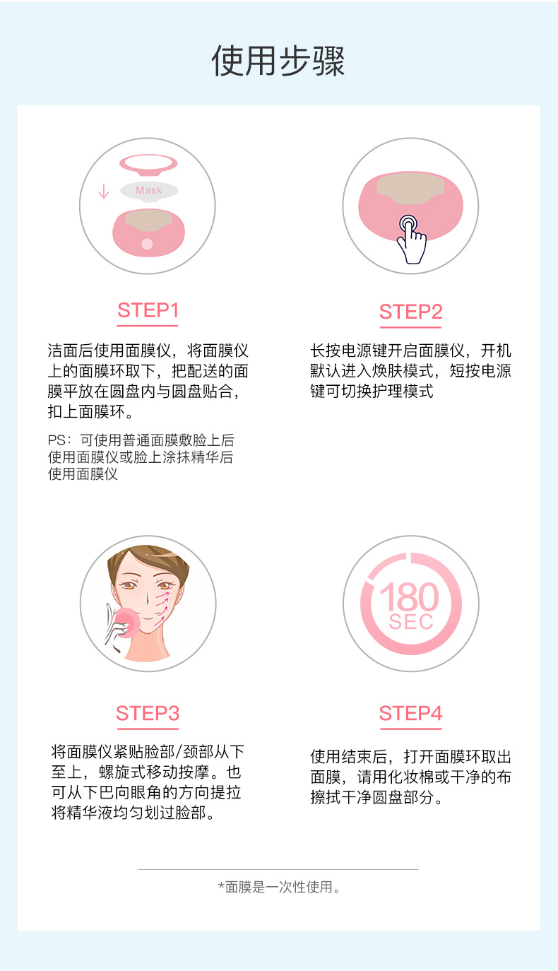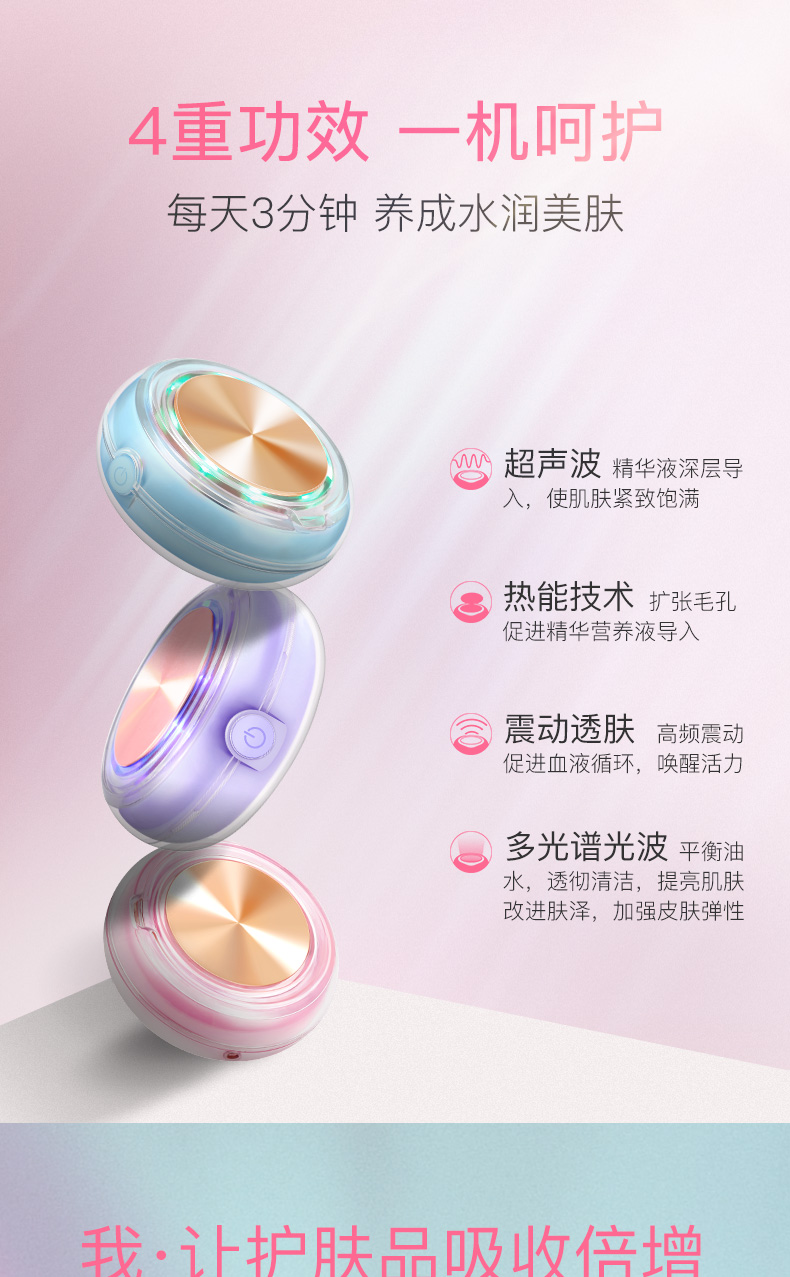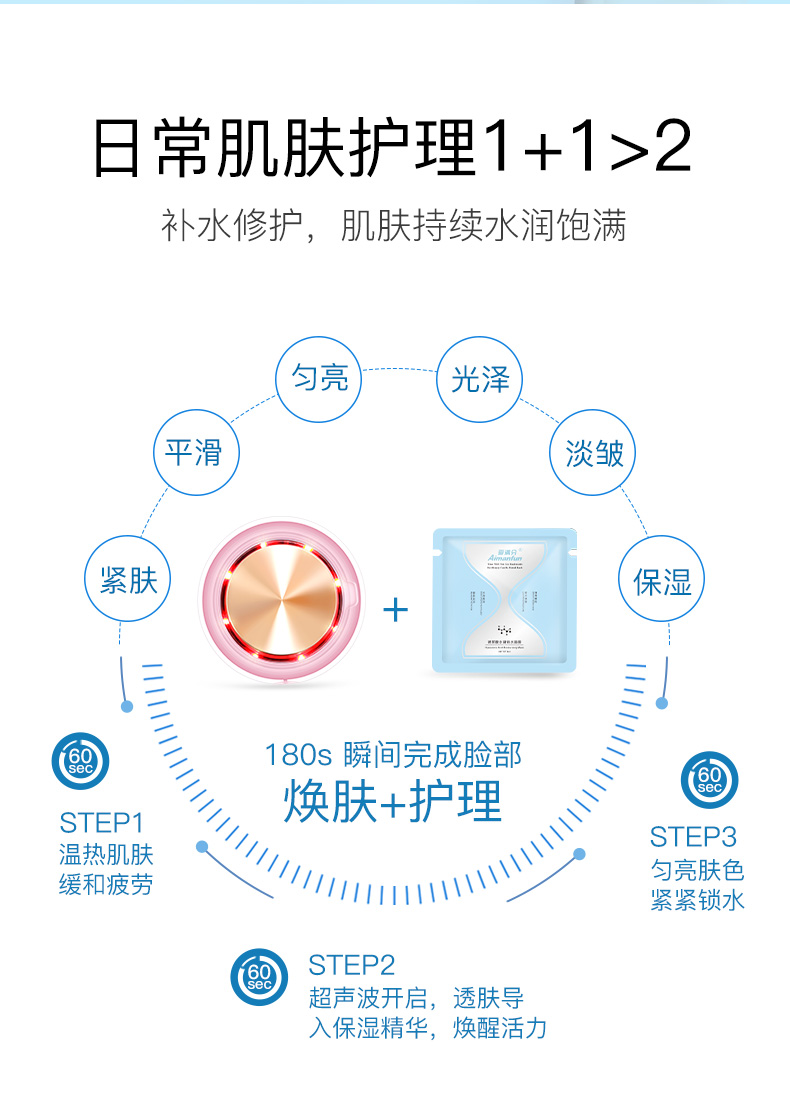 【送化妆袋1个+2盒面膜+使用装2片】超声波导入,在家也可轻松做美容,清除污垢,净化毛孔,消除黑眼圈,导入精华,让肌肤重回年轻态!【赠洗脸巾】