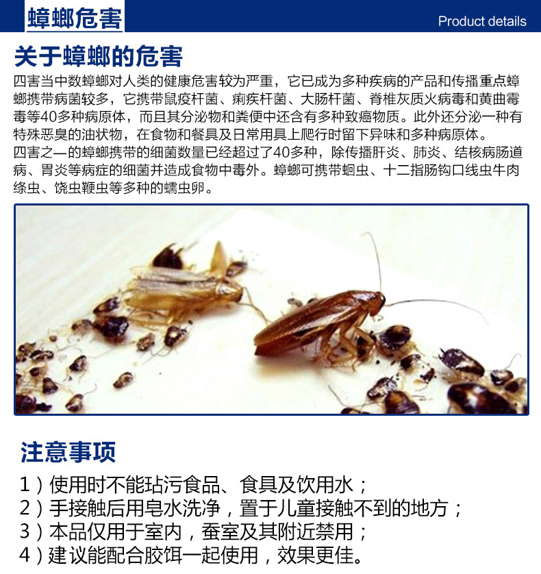 速抢!手慢无!春暖花开,蟑螂也开始嚣张了!强力灭蟑螂药,比小摊上的还便宜!无毒无味引诱性强,杀蟑见效迅速!独立包装使用方便,居家必备!