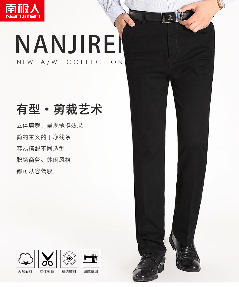 南极人休闲裤男士宽松直筒西裤纯棉中老年爸爸秋冬季加厚长裤男装
