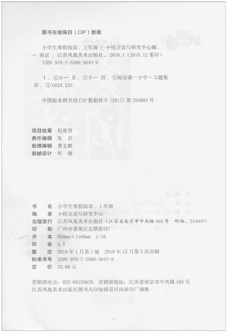 小桔豆 小学生寒假阅读 1年级/一年级 小学语文阅读训练拓展培养阅读素养趣味知识快乐学习 江苏凤凰美术出版社