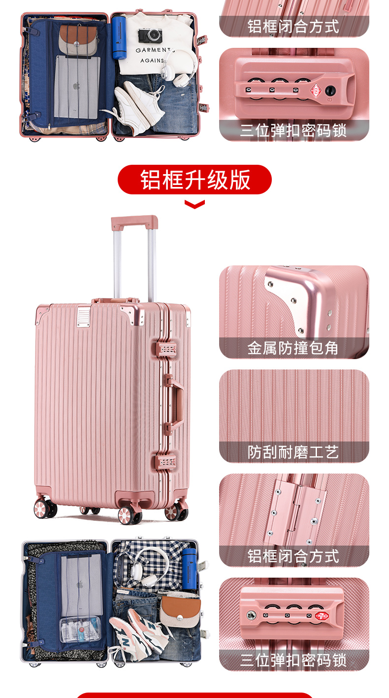 拉杆箱旅行箱子韩版密码皮箱万向轮潮男女网红行李箱ins铝框登机