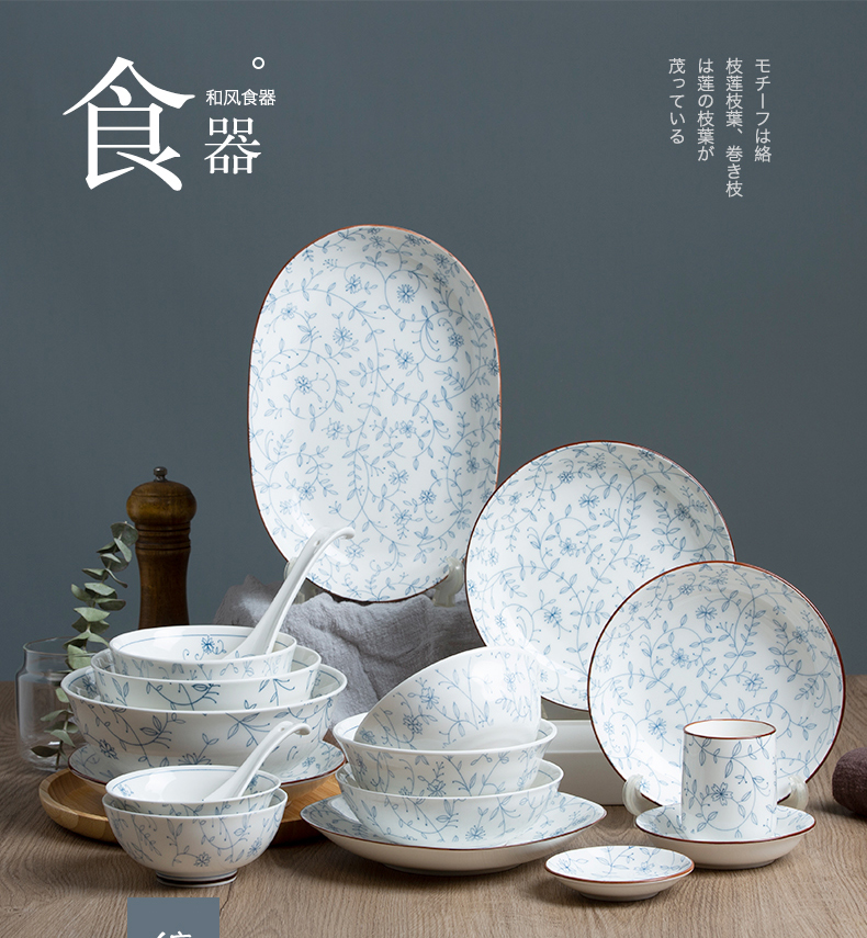 碗碟套装家用骨瓷日式餐具釉下彩北欧简约吃饭碗筷景德镇陶瓷碗盘