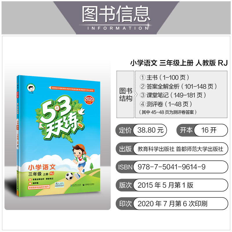2019秋新版53天天练三年级上册语文数学书同步训练全套语数人教部编版五三5 3小儿郎5.3全优卷暑假昨业试卷全套作部编本辅导资料