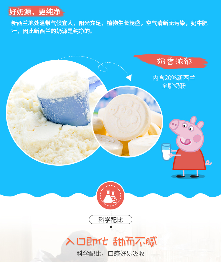 第二件2.9元!两件只要18.8】【乐达】最近超火的小猪佩奇牛奶片,进口奶源,入口即化,科学配比,口味丰富,品质保障!