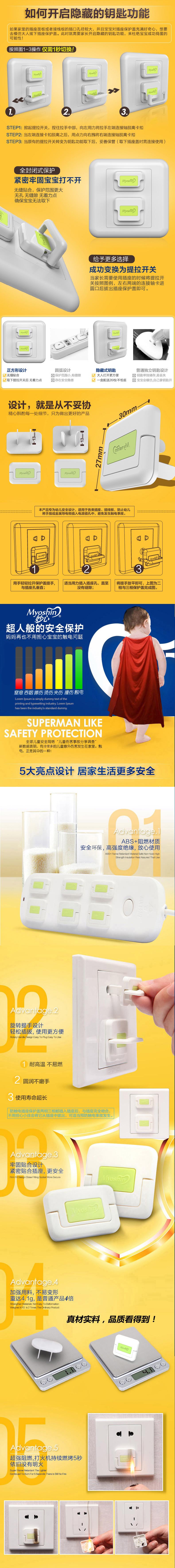 妙心宝宝防触电插座保护盖安全插头儿童防护盖安全塞电源插孔保护