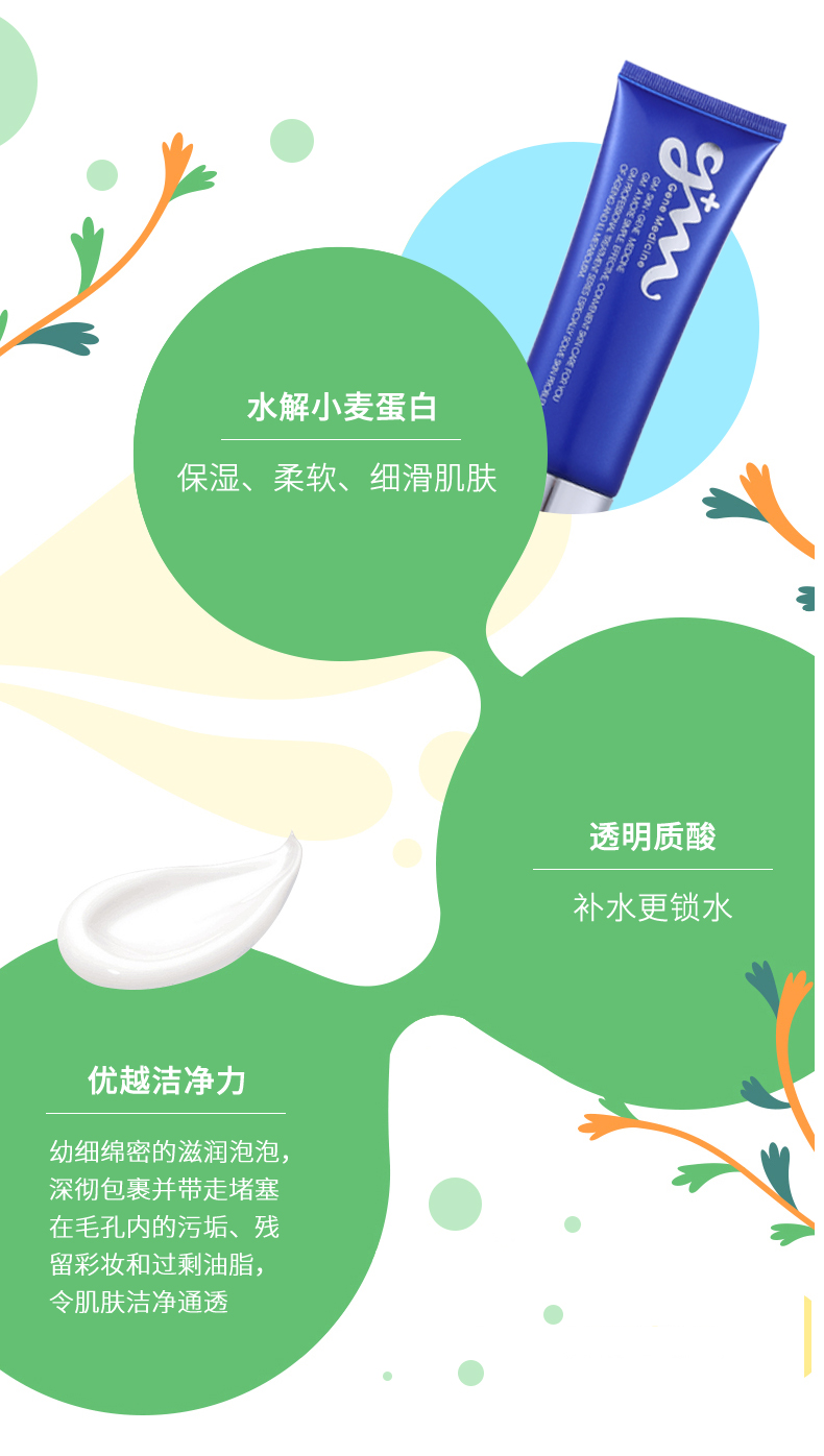 好肌肤从洁面开始,添加烟酰胺美白成分,百合本草植护精粹,温和氨基酸,清洁净肤控油祛痘,亮白肌肤,高倍保湿,水水嫩嫩洗出来。