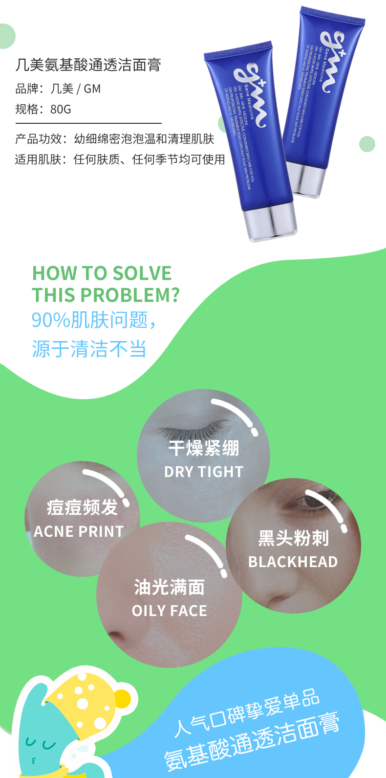 几美gm氨基酸洗面奶洁面女温和补水深层清洁乳学生控油收毛孔正品