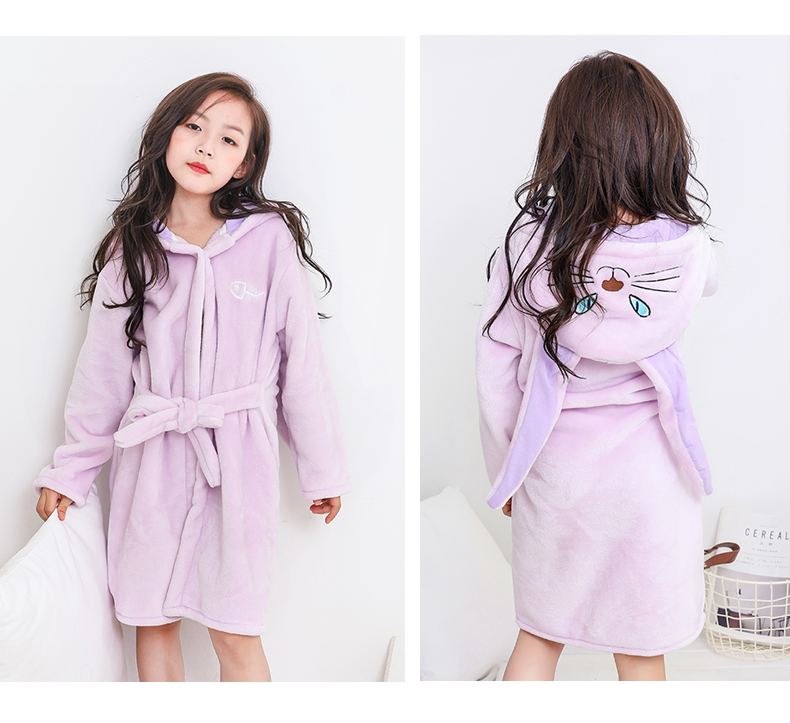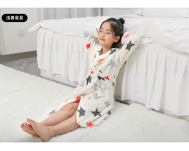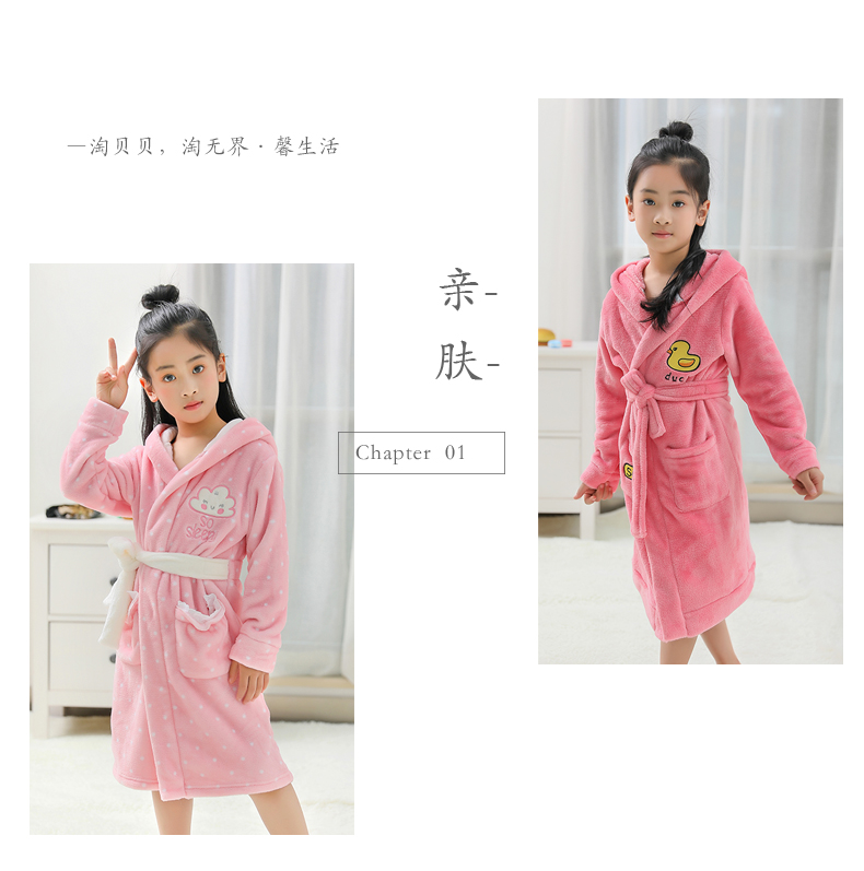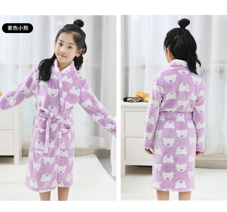 淘贝贝儿童浴袍女 公主珊瑚绒女孩女童春秋法兰绒冬季中大童睡袍