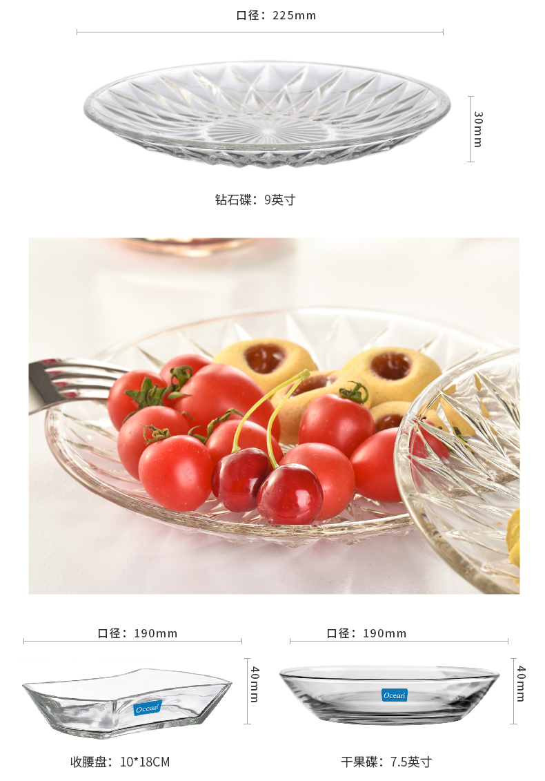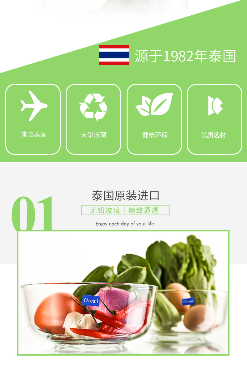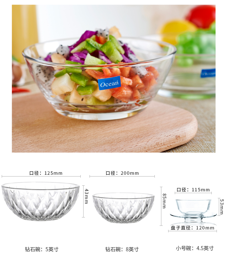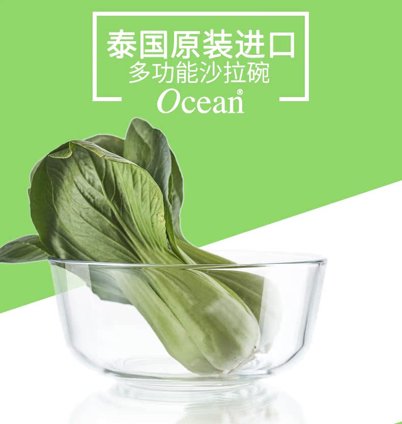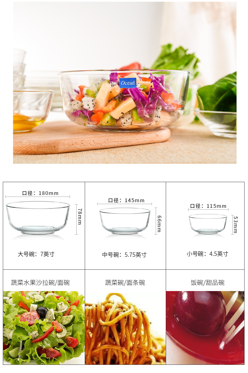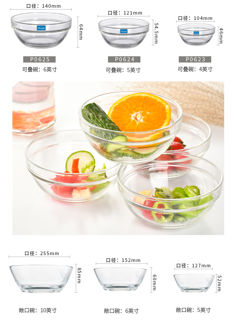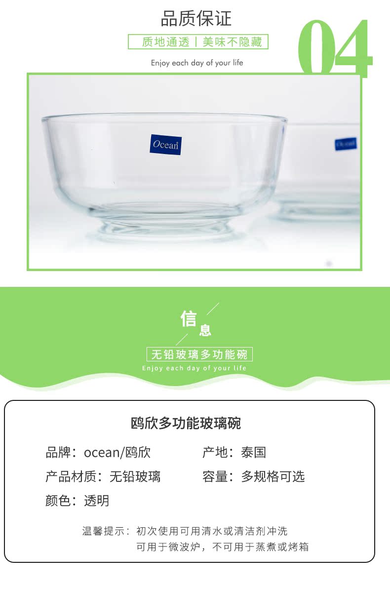 (拍5送1)Ocean进口无铅加厚玻璃饭碗面碗汤碗水果沙拉碗色拉碗