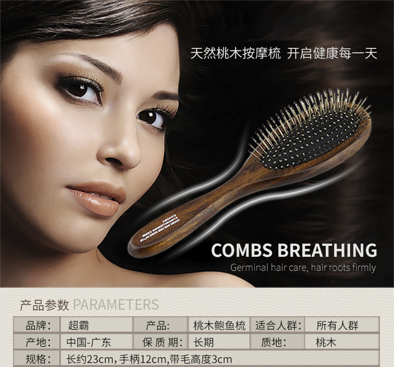 CHAO BA气囊按摩梳子桃木鲍鱼大板梳 头皮气垫梳美发护发卷发顺发