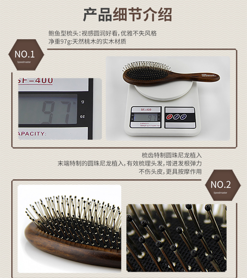 天然实木桃木材质,手工精制有质感,能有效按摩头皮,缓解疲劳,无论是睡前按摩,或者吹风造型,有效解决头发易打结,头发干枯毛躁细软,梳头梳不开,按摩梳子,头皮按摩,防止脱发。【赠运费险】