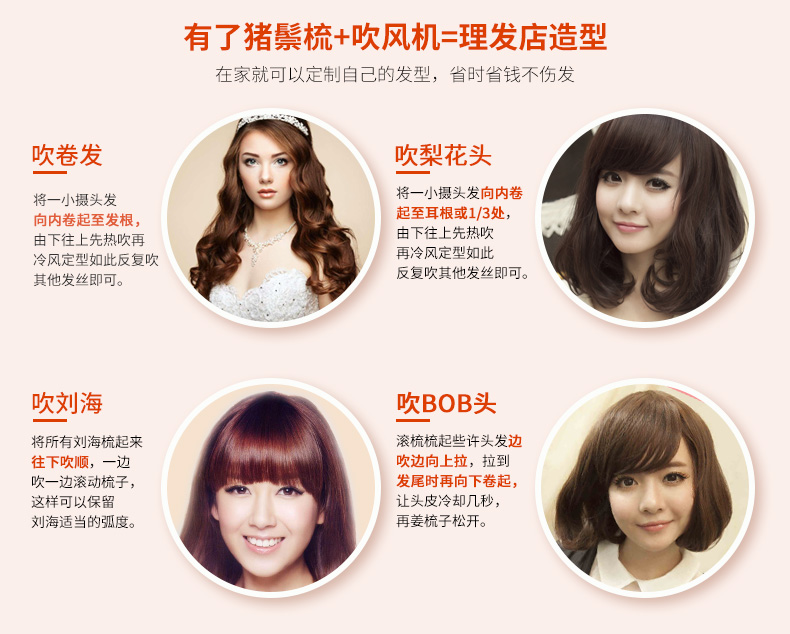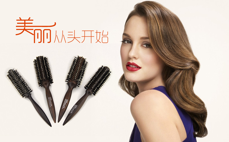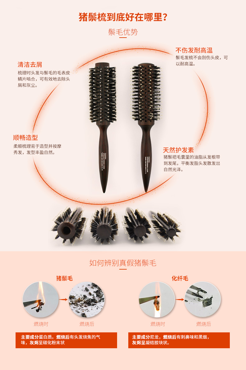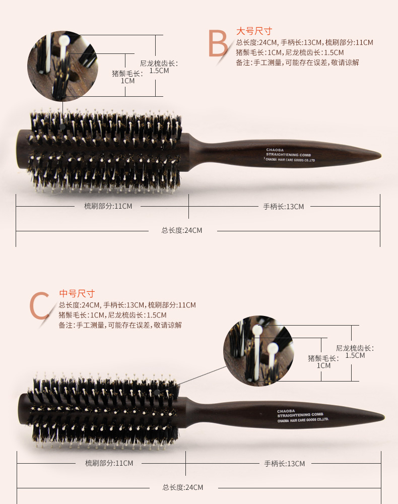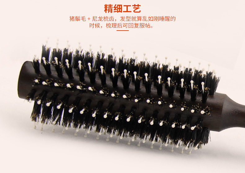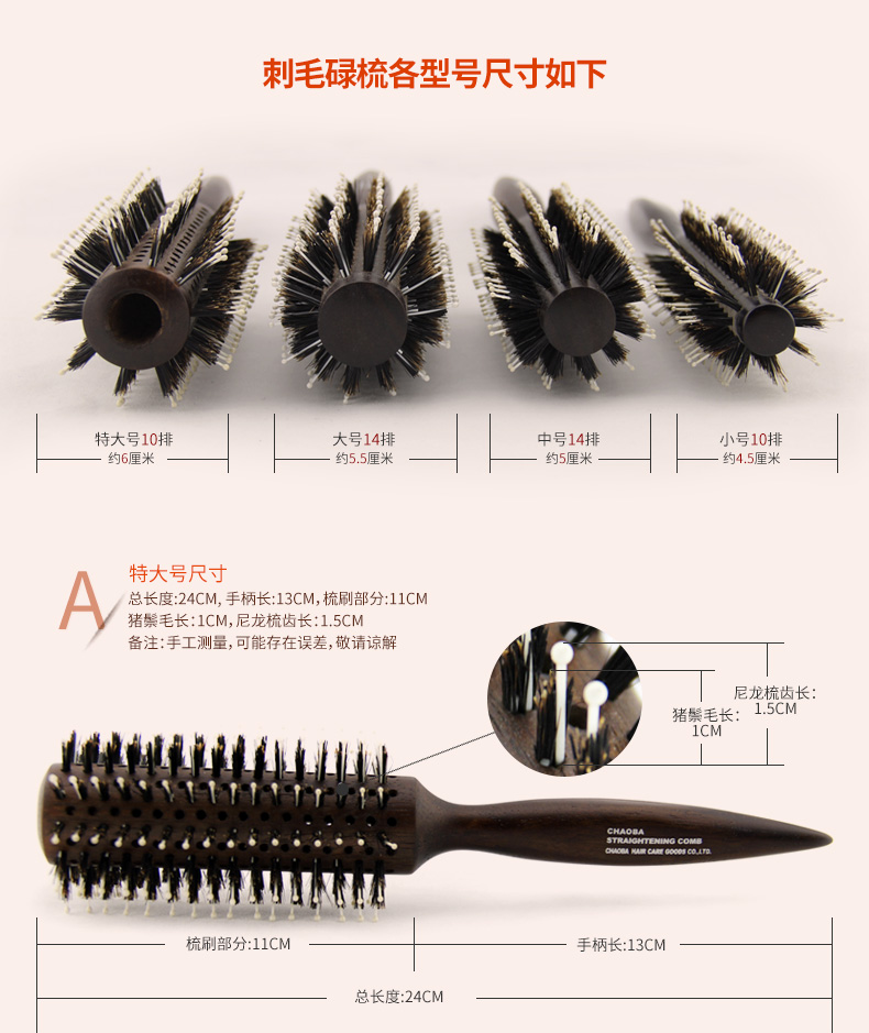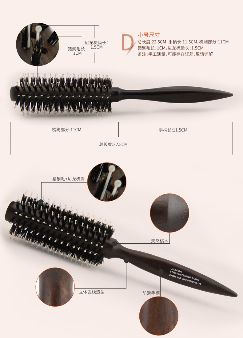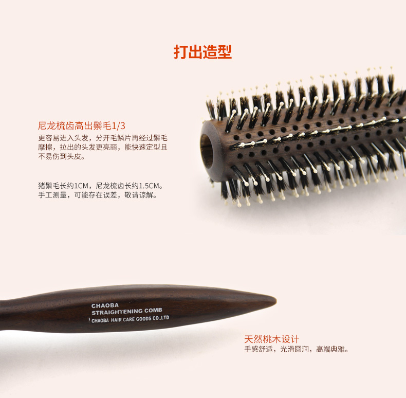 CHAOBA猪鬃毛桃木梳子 吹直发卷发梨花头内扣造型 圆筒滚梳