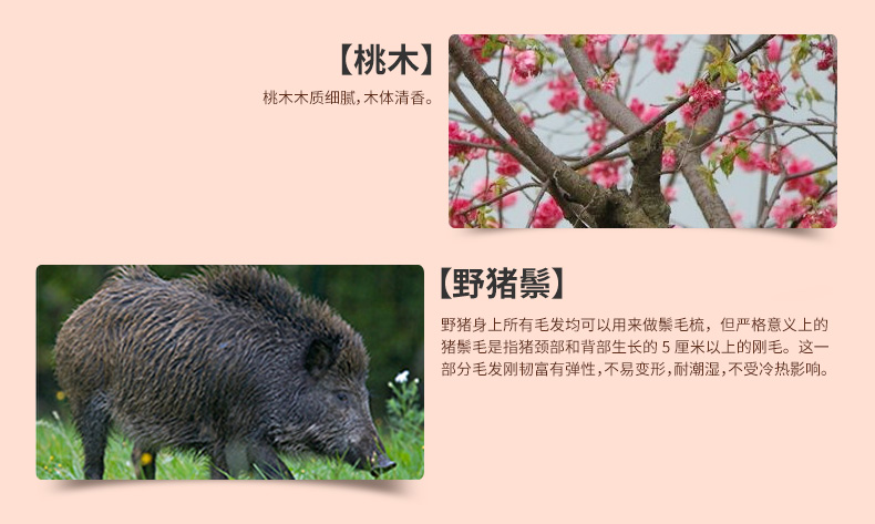 天然桃木、猪鬃毛材质,天然护发素,手工精制有质感,能有效按摩头皮,缓解疲劳,头发易打结,头发干枯毛躁细软,梳头梳不开,按摩梳子,头皮按摩,防止脱发。【赠运费险】