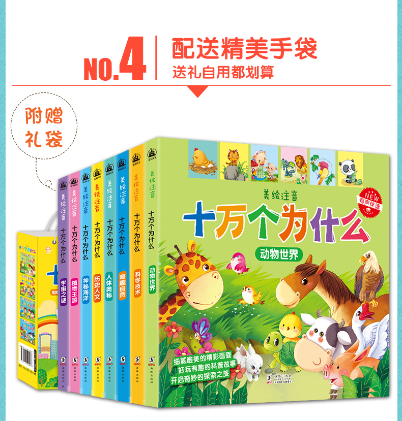 全8册新版加厚 十万个为什么幼儿版儿童版彩图注音全套4岁幼儿园宝宝早教故事书3-6-8岁书籍幼儿科普绘本2-3-6周岁百科全书恐龙书