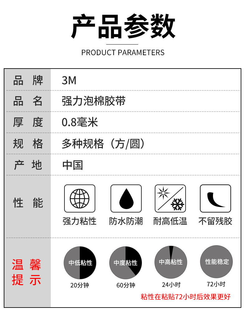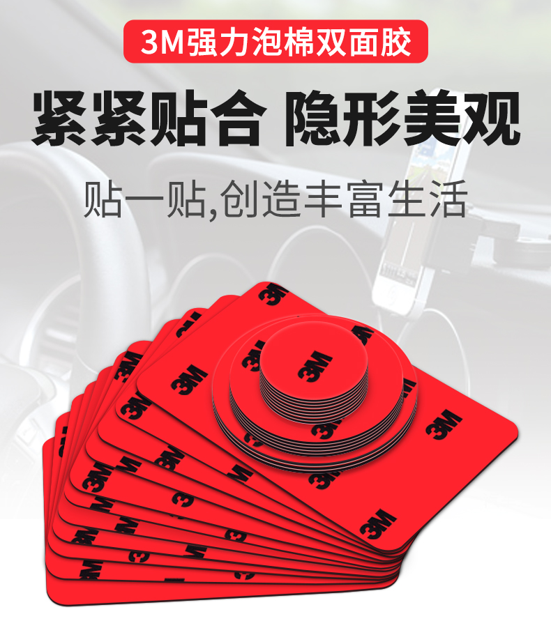 3M双面胶强力汽车用泡海绵胶带固定墙面手机etc支架高粘小圆贴片