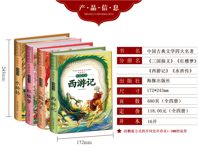 全4册,中国古典四大名著全套原著正版,三国演义、西游记、水浒传、红楼梦彩图注音版。无障碍阅读,孩子课外阅读佳作。影响孩子一生的读物【赠运费险】