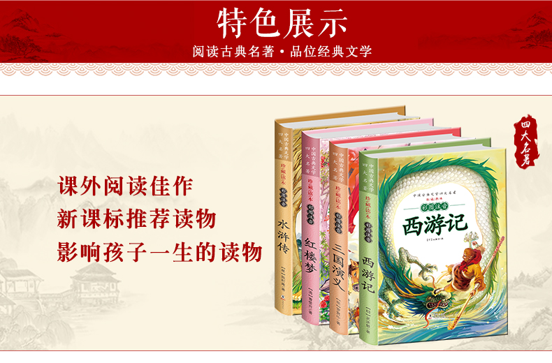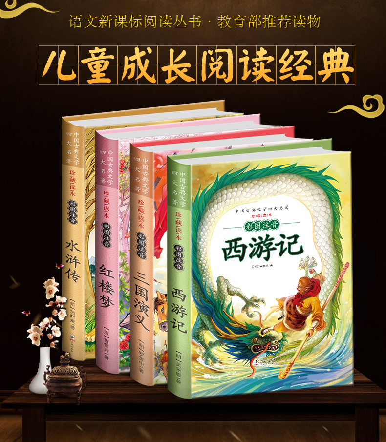 全4册 四大名著全套原著正版 三国演义 西游记 水浒传 红楼梦彩图注音版 青少年中小学生儿童无障碍阅读白话文 少儿新课标课外读物
