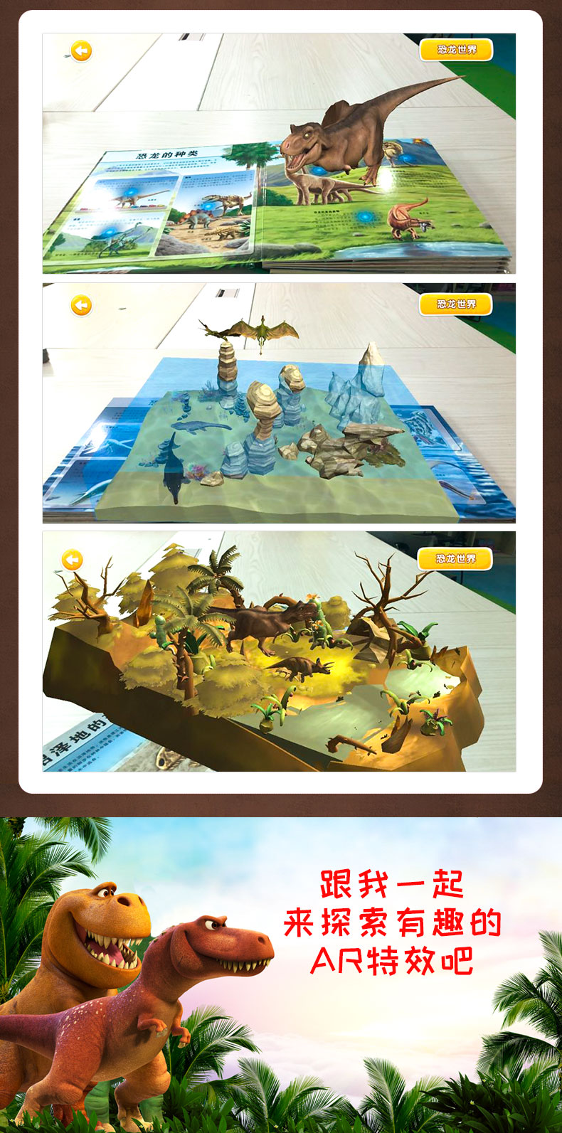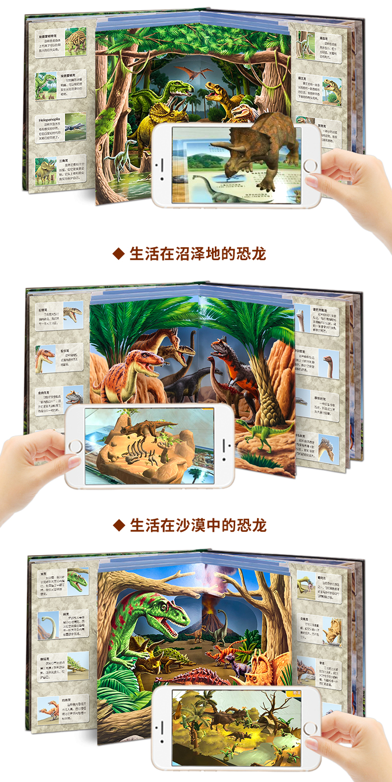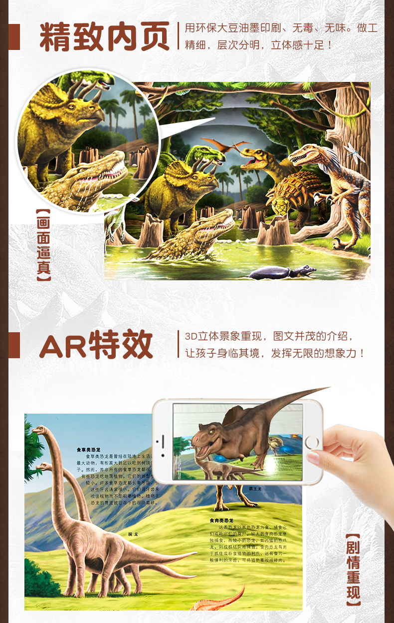 恐龙世界ar书籍 儿童3D立体书自然世界系列恐龙百科全书揭秘恐龙王国科普大百科翻翻书 幼儿3d立体书侏罗纪恐龙书籍3-6-8-10岁读物