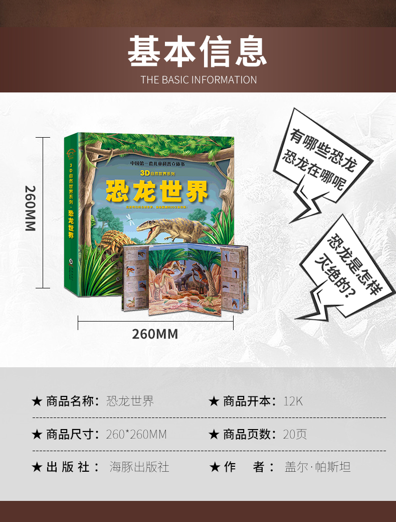 【书店首发】恐龙世界3D立体书,3-6-9-12岁儿童科普,精美3D立体图,培养孩子创造力,想象力,冲击视觉,激发儿童求知天性~