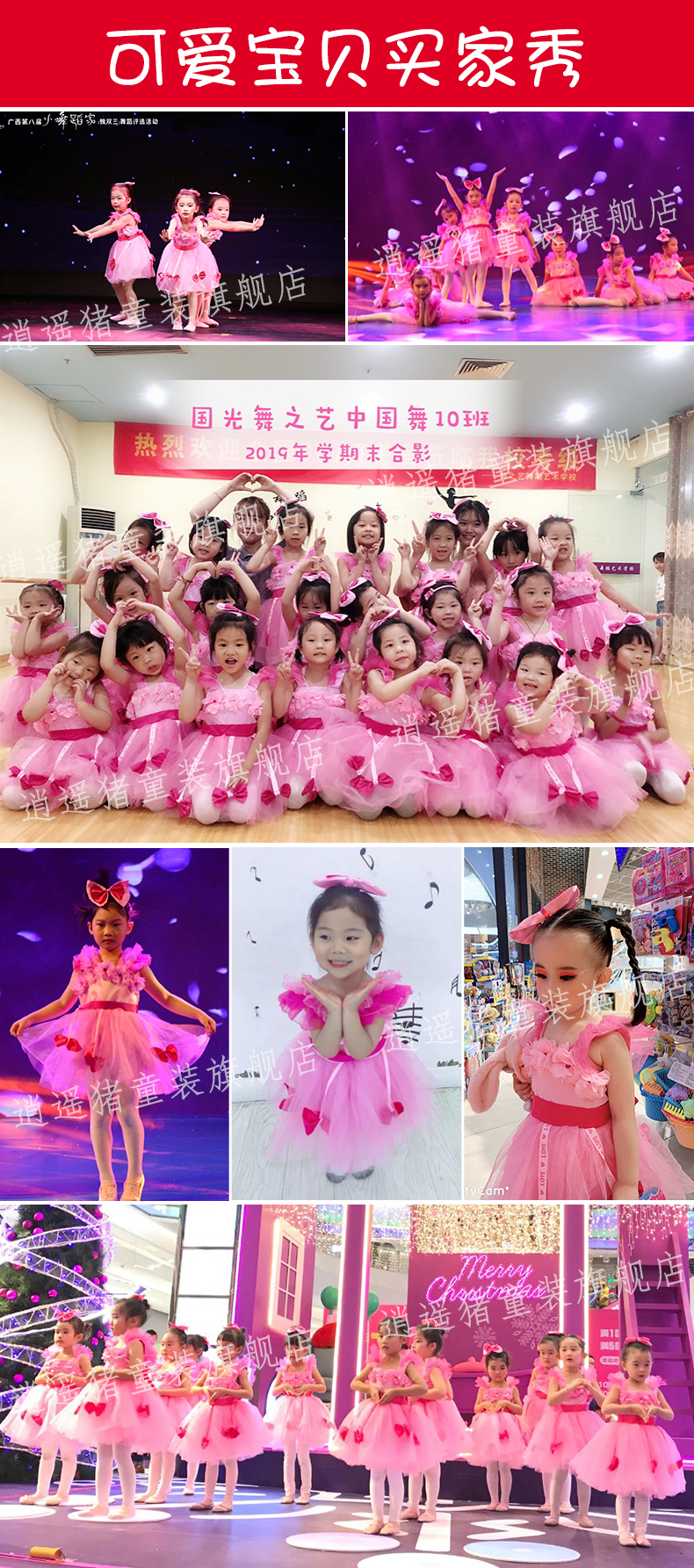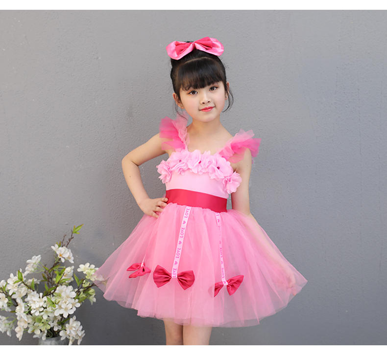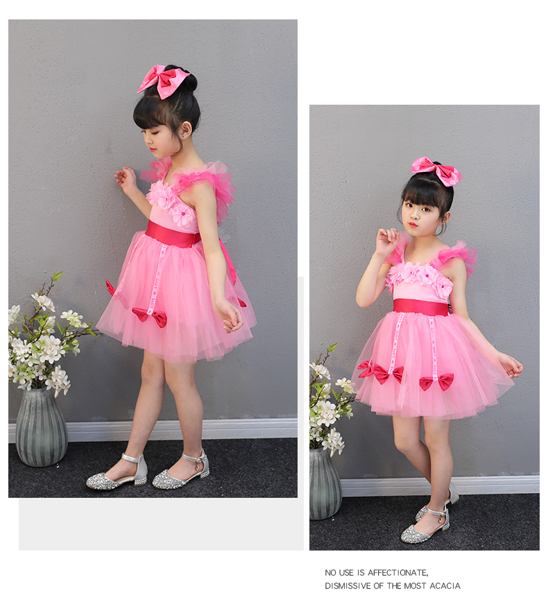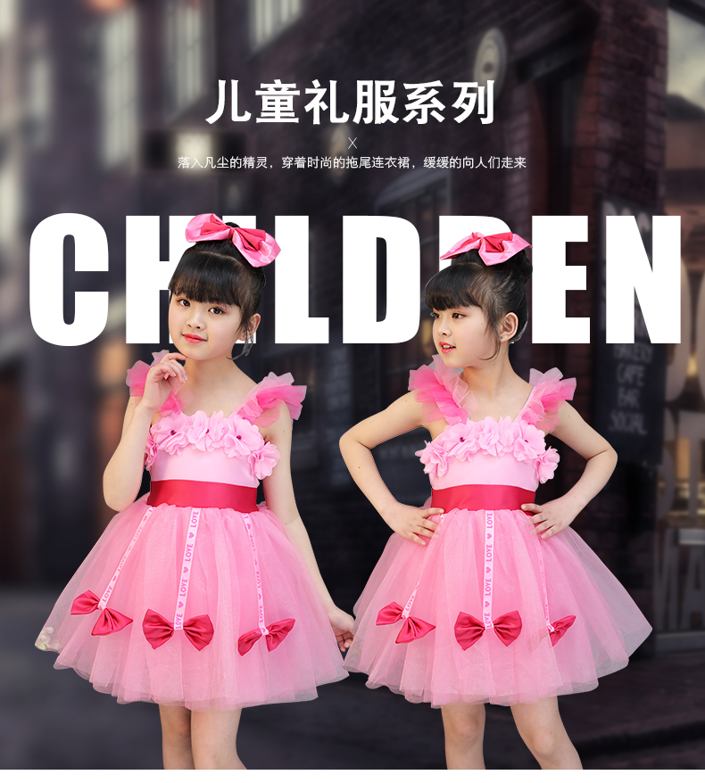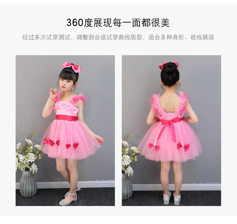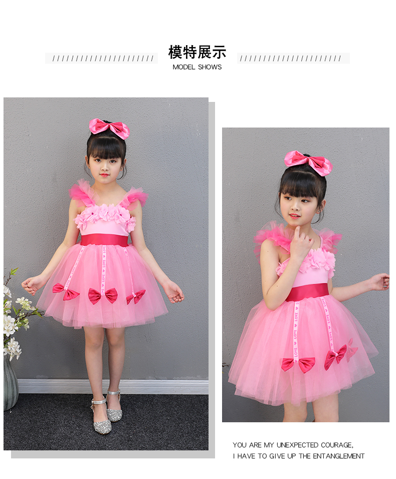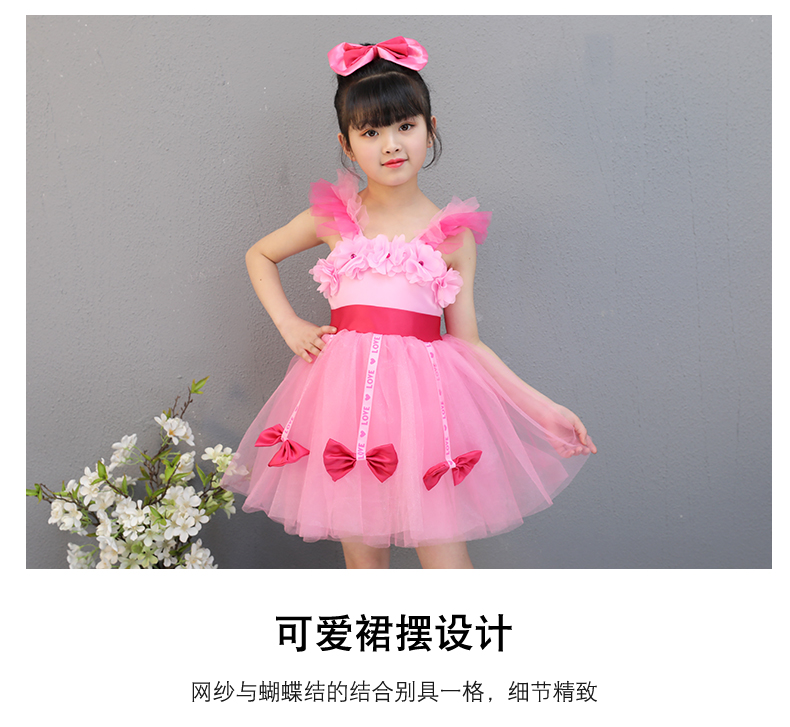 儿童演出服可爱粉舞蹈蓬蓬纱裙幼儿园连衣裙女童公主裙元旦表演服
