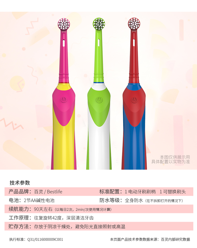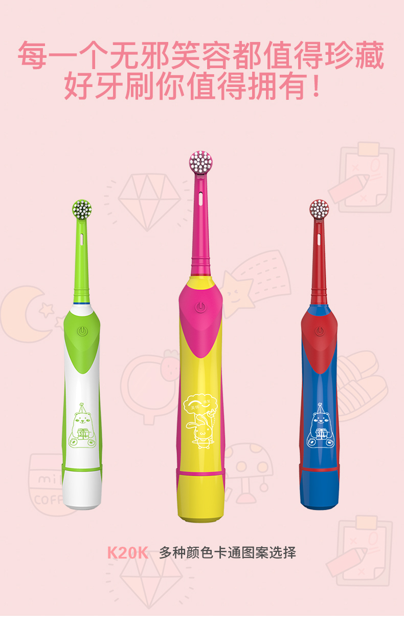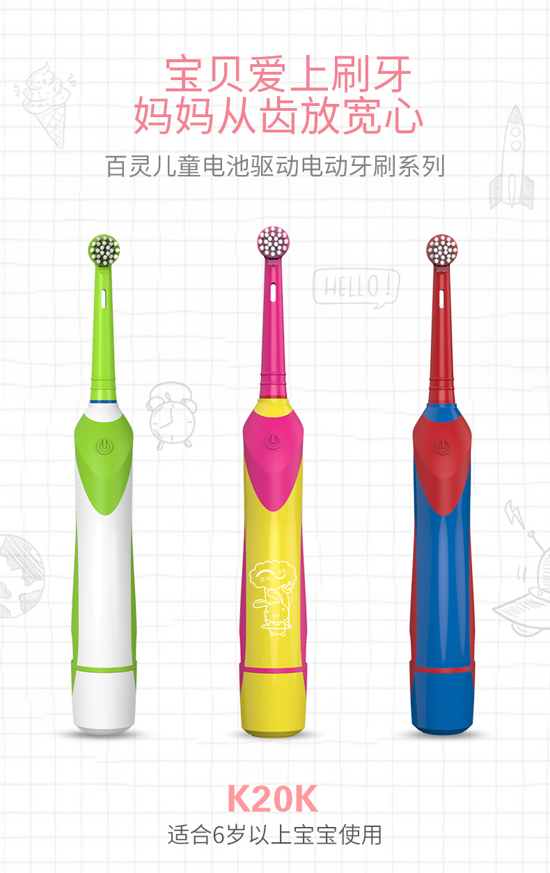 百灵K20K电动牙刷成人旋转式软毛牙刷防水自动牙刷儿童电动牙刷