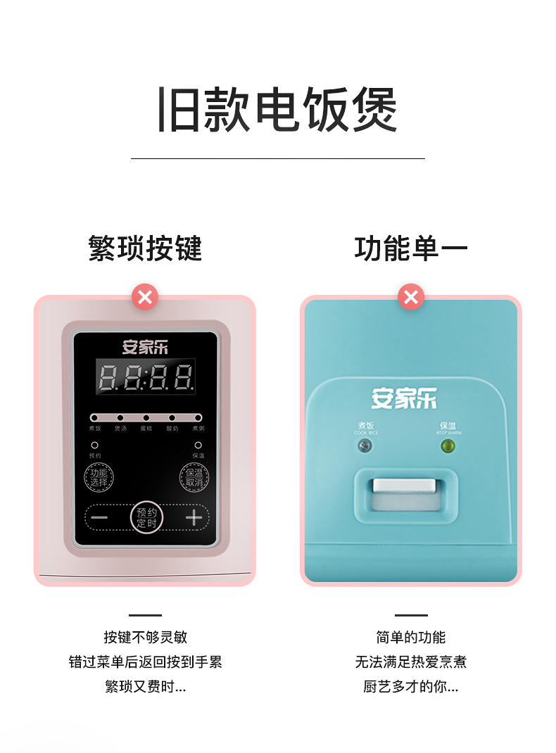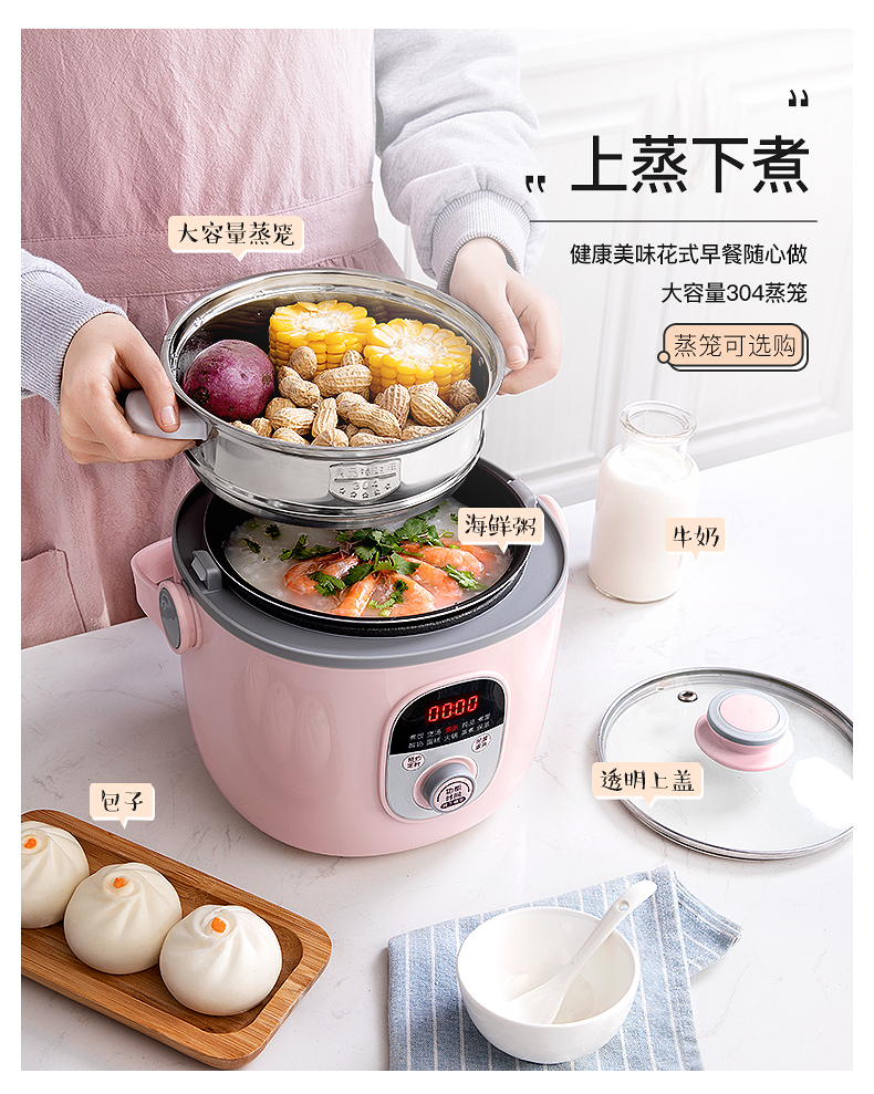 【安家乐】迷你多功能电饭,食品级不粘锅内胆,美观耐用,智能定时,上蒸下煮,方便美味,就是不一样的口感,诱惑力十足,还在犹豫吗?【赠运费险】