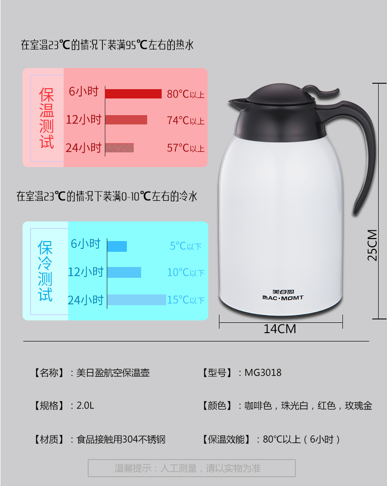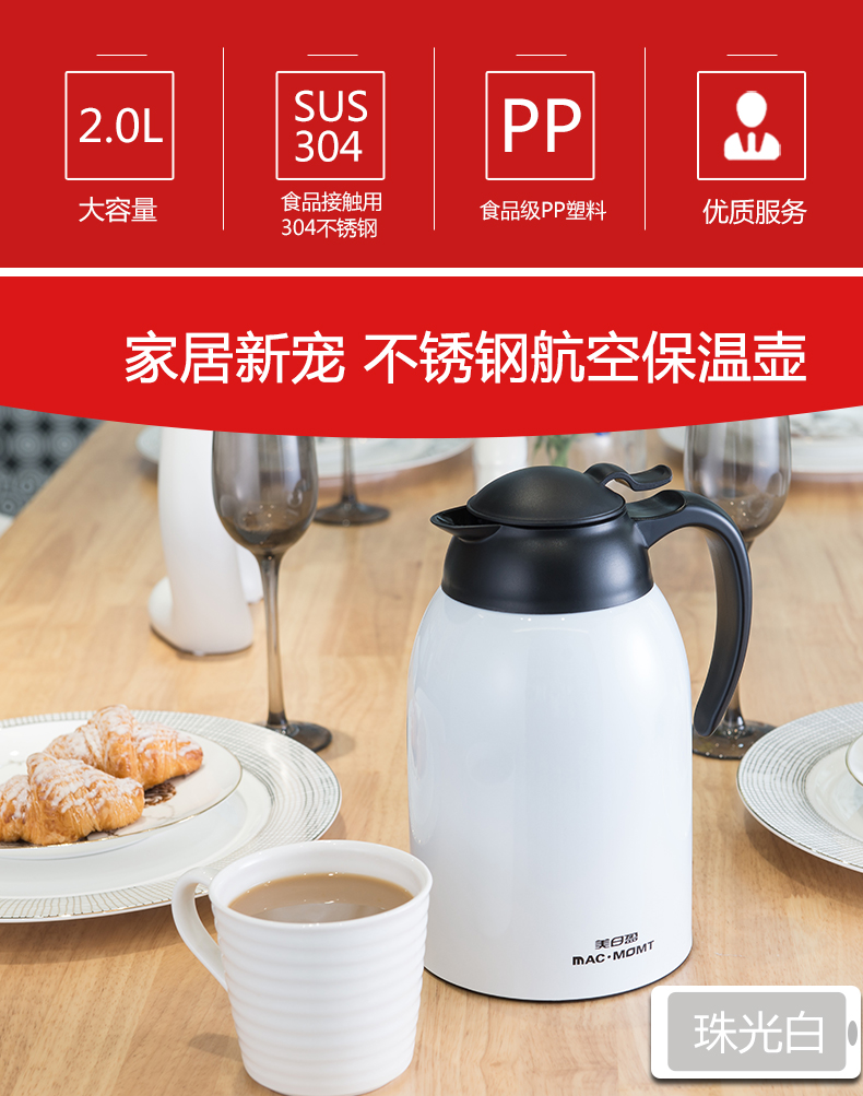 304食品级不锈钢,不锈钢航空保温壶,2L大容量设计,保冷保温,健康安全无异味,简单大气的外观设计,大牌值得信赖,品之所致,匠心之道【赠运险费】